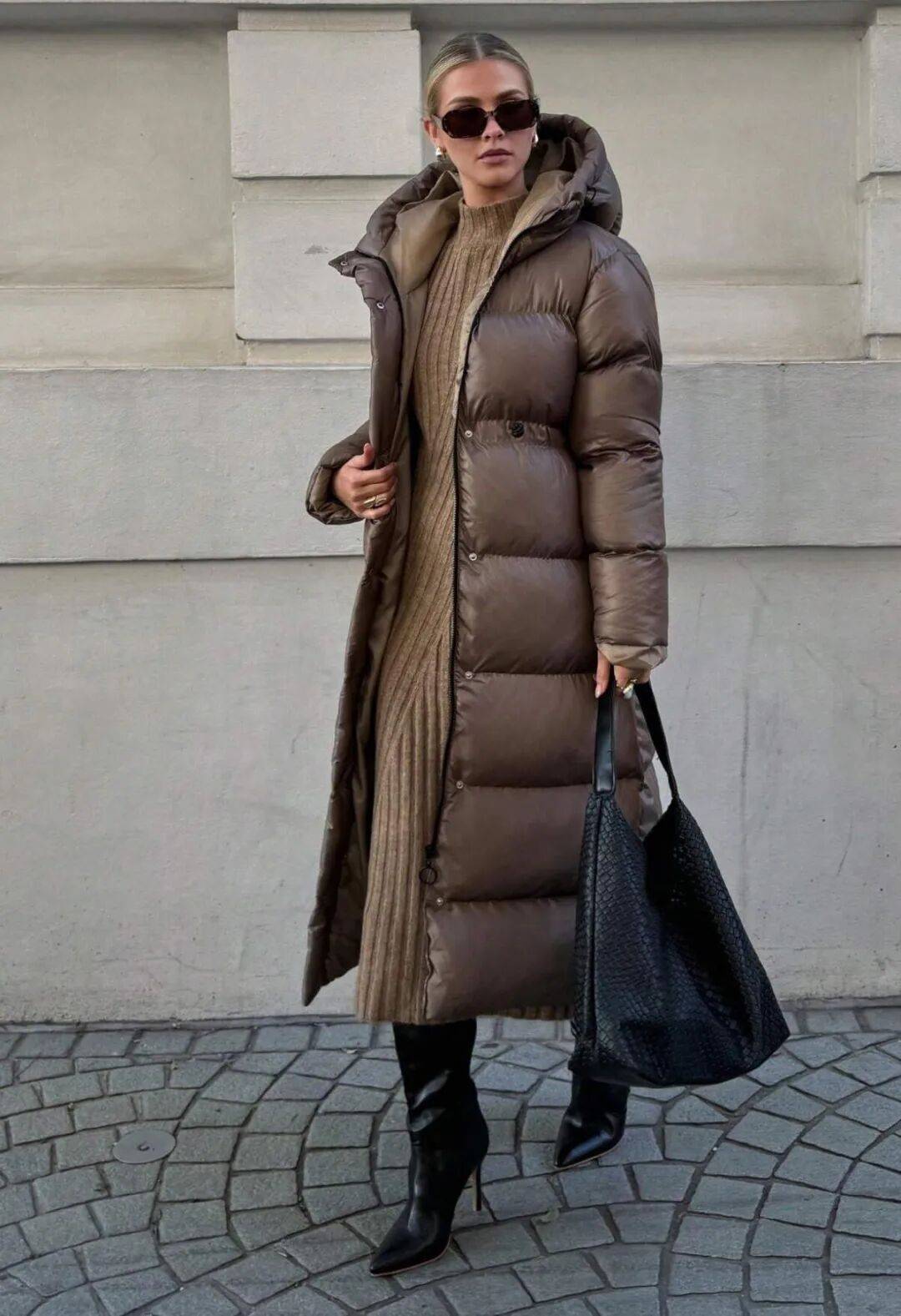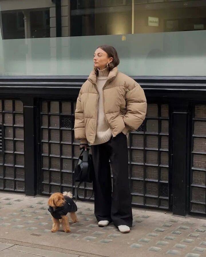 内搭尽量选择修身单品,或是搭配同色系的裤装与靴子,能最大限度地在视觉上拉长身形,避免被厚重面料“压垮”。