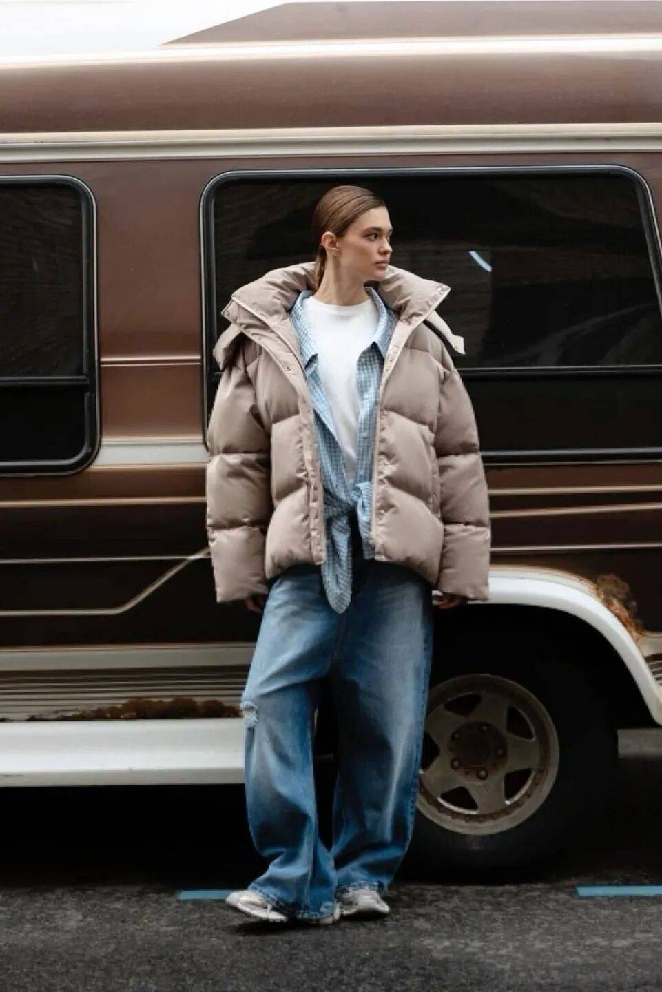 面包羽绒服的蓬松轮廓,非但不是风格的限制,反而成为激发无限搭配灵感的画布。