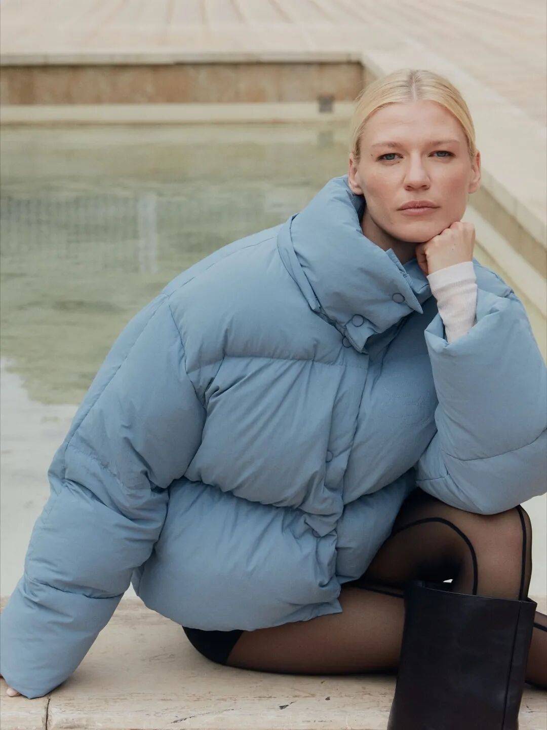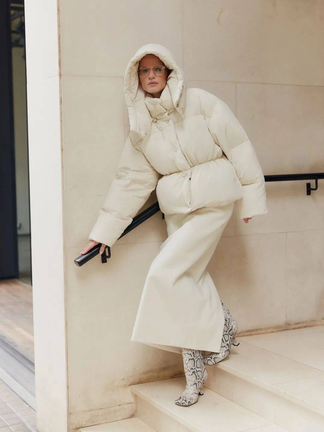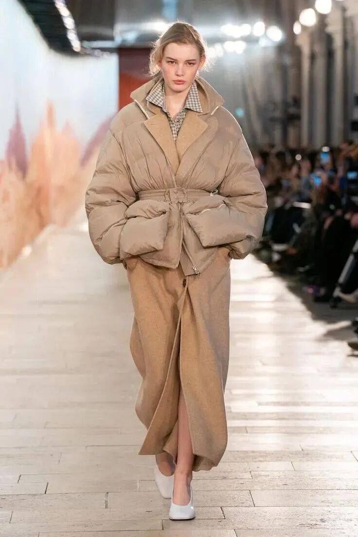 一件蓬松、柔软、包裹感十足,有着如枕头面包般绗缝块状隆起、廓形圆润饱满的面包羽绒服,便成为实用主义之选,成为了冬日里最不容小觑的主角单品。