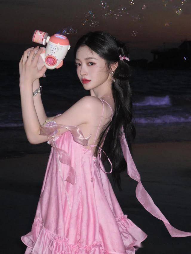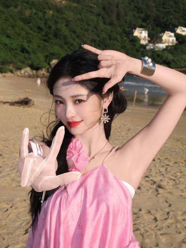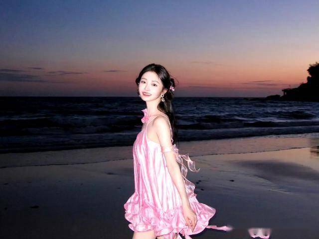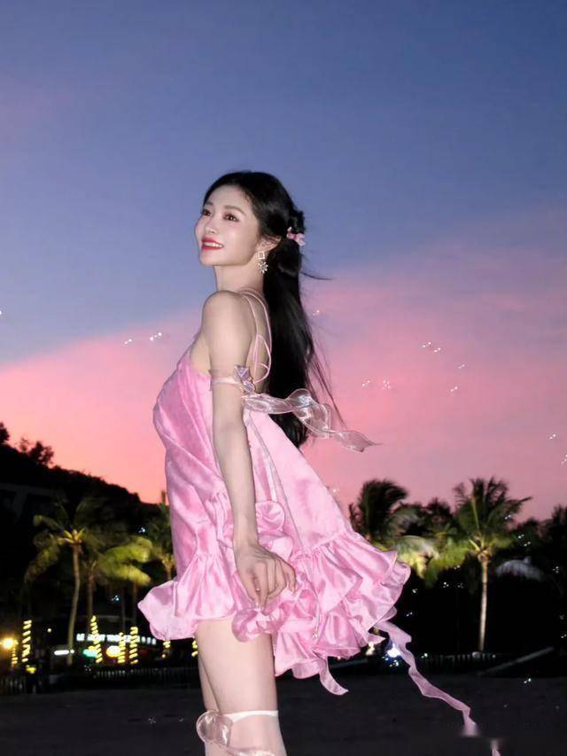 粉色挂脖裙海边造型:2025年8月6日,她晒出粉色挂脖短裙美照,扎着双马尾辫,在海边被风吹得裙摆轻扬,“甜到人心里去”。挂脖设计展现直角肩与白皙肤色,不规则裙摆凸显特别感,网友称其“粉色糖果少女”。(来源[6][11])