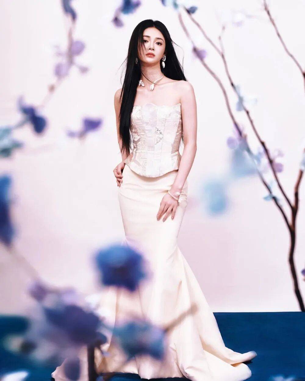 米白色抹胸裙春日氛围感:2025年8月29日,她发布春日花园写真,身着米白色抹胸裙,长发垂落手搭花枝,姿态优雅如“花仙子”。真丝混纺面料泛着珠光光泽,完美勾勒肩颈线条与腰臀曲线,被赞“春日氛围感天花板”。(来源[21])