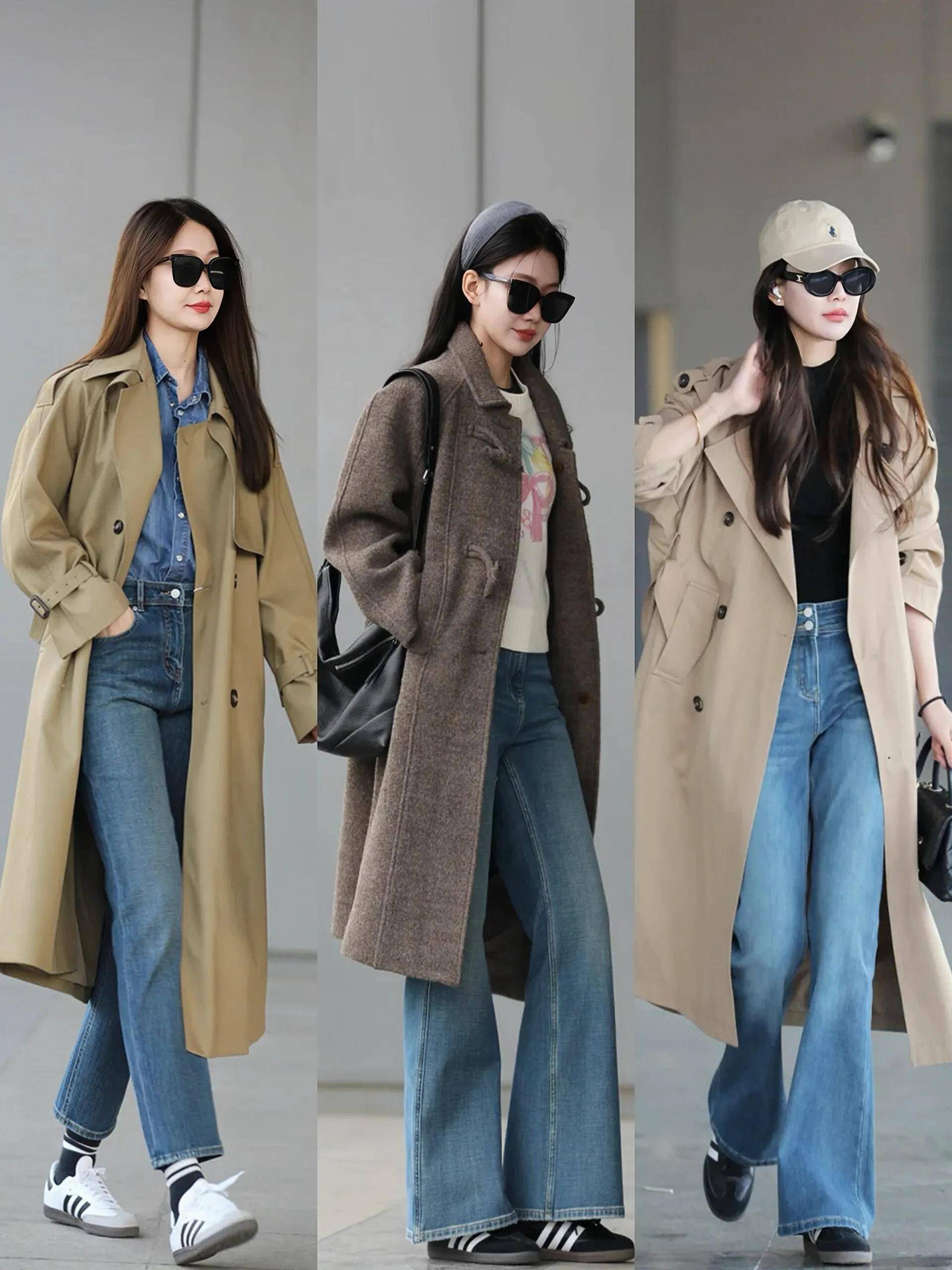 小白鞋:小白鞋+牛仔阔腿裤,休闲随性,适合日常逛街、通勤或旅行;