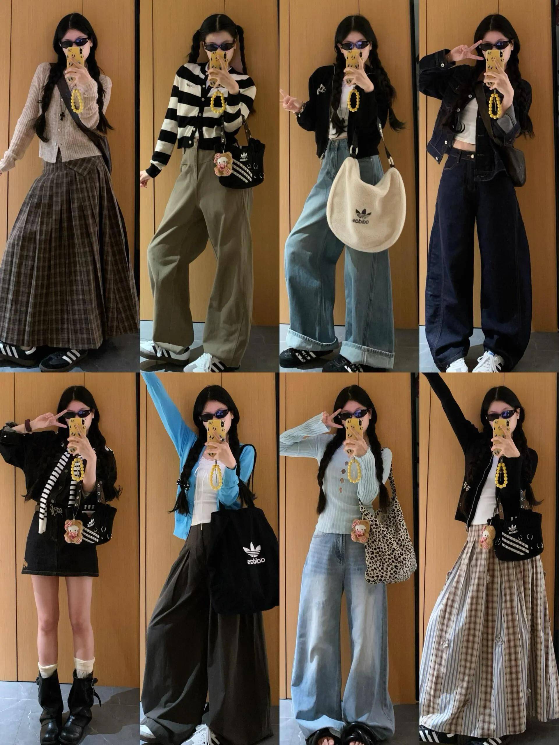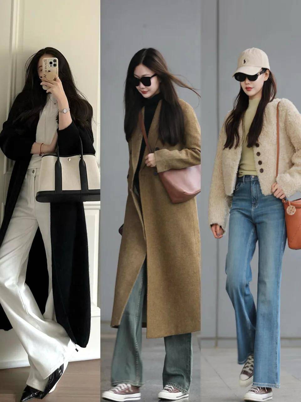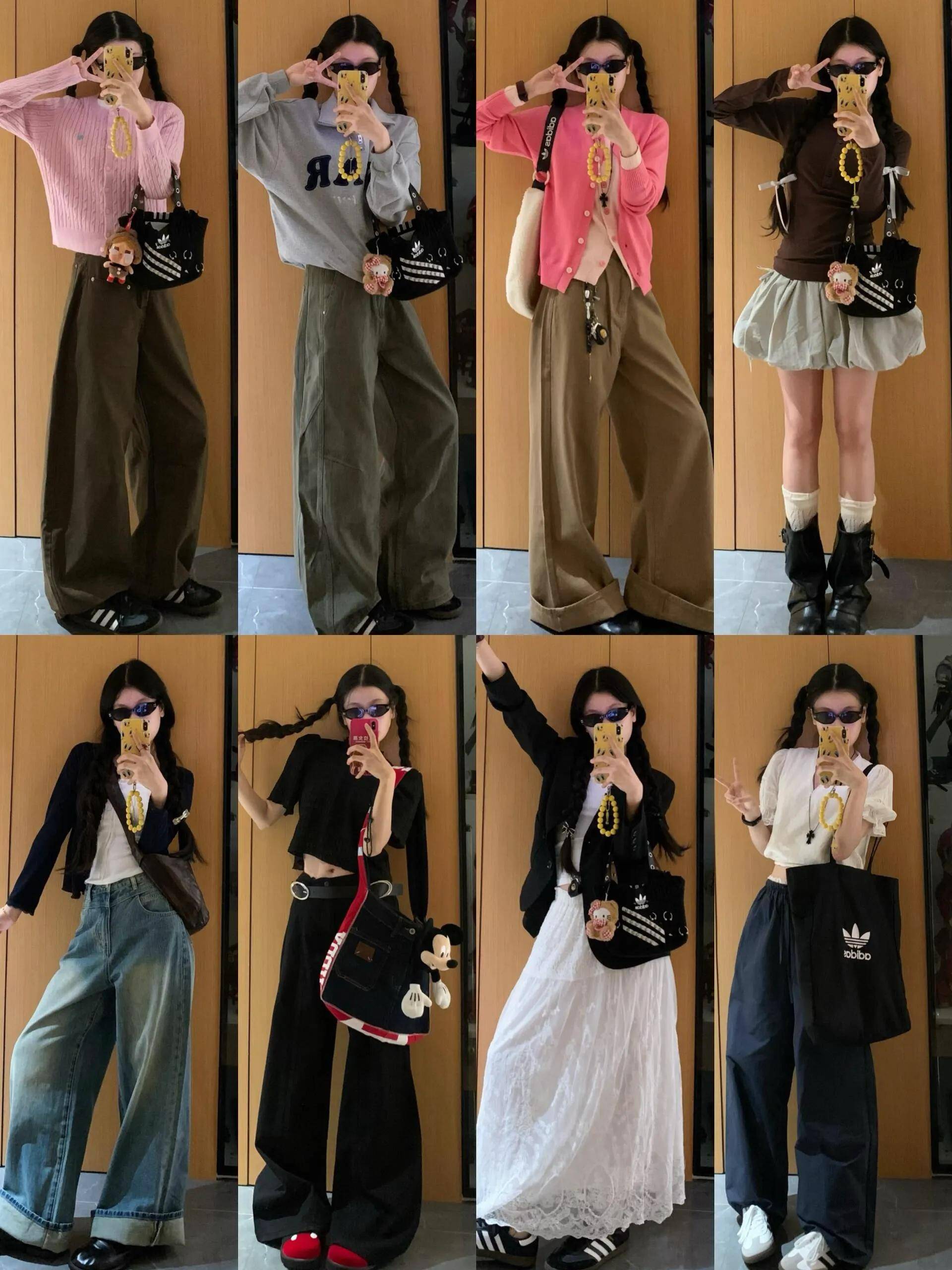 包包:同色系包包(如米白阔腿裤+米白包)显协调;黑白灰无彩色包包百搭,适合所有风格;造型单一可选个性包包(如流苏包、mini链条包),点亮整体。
