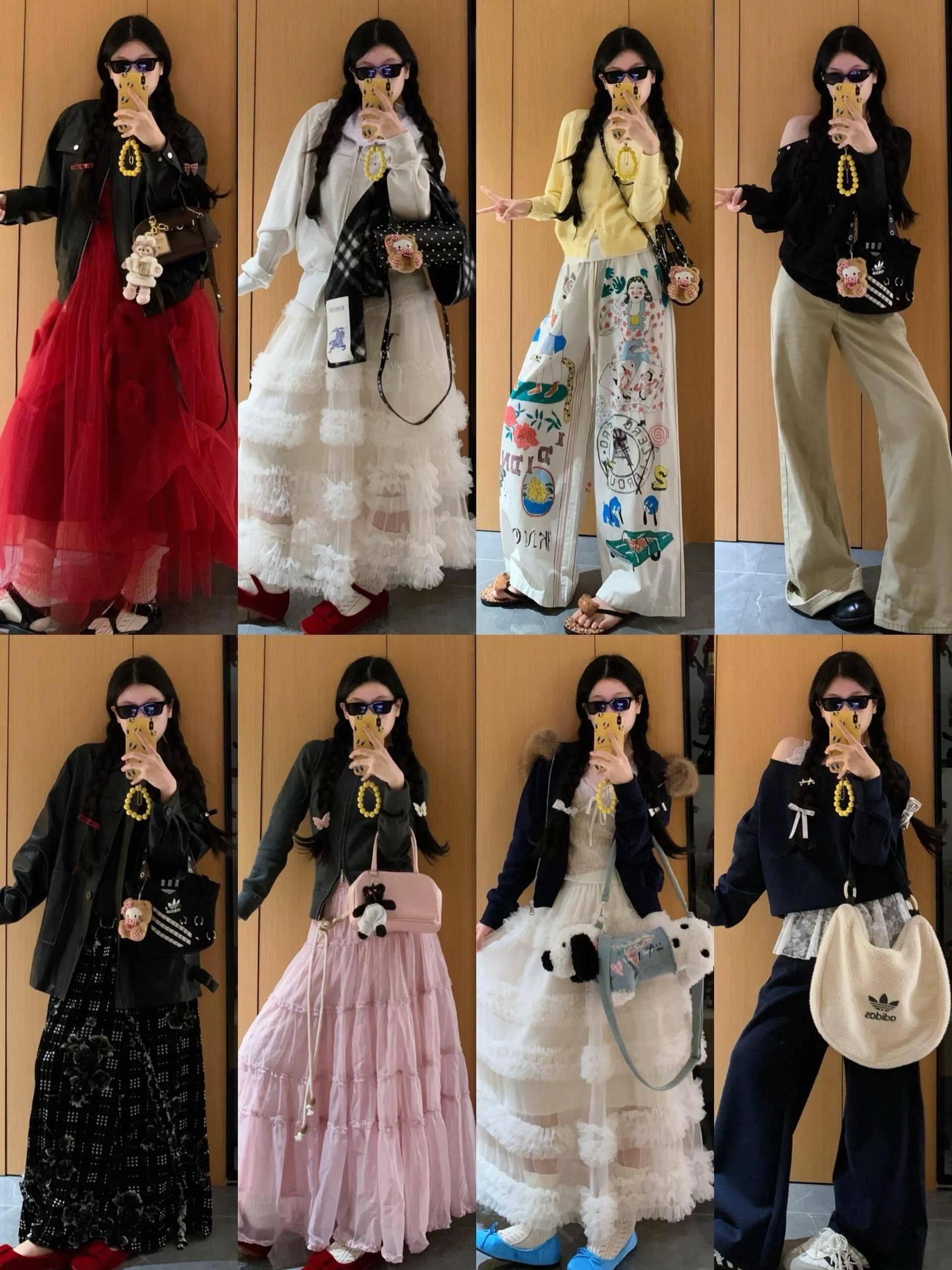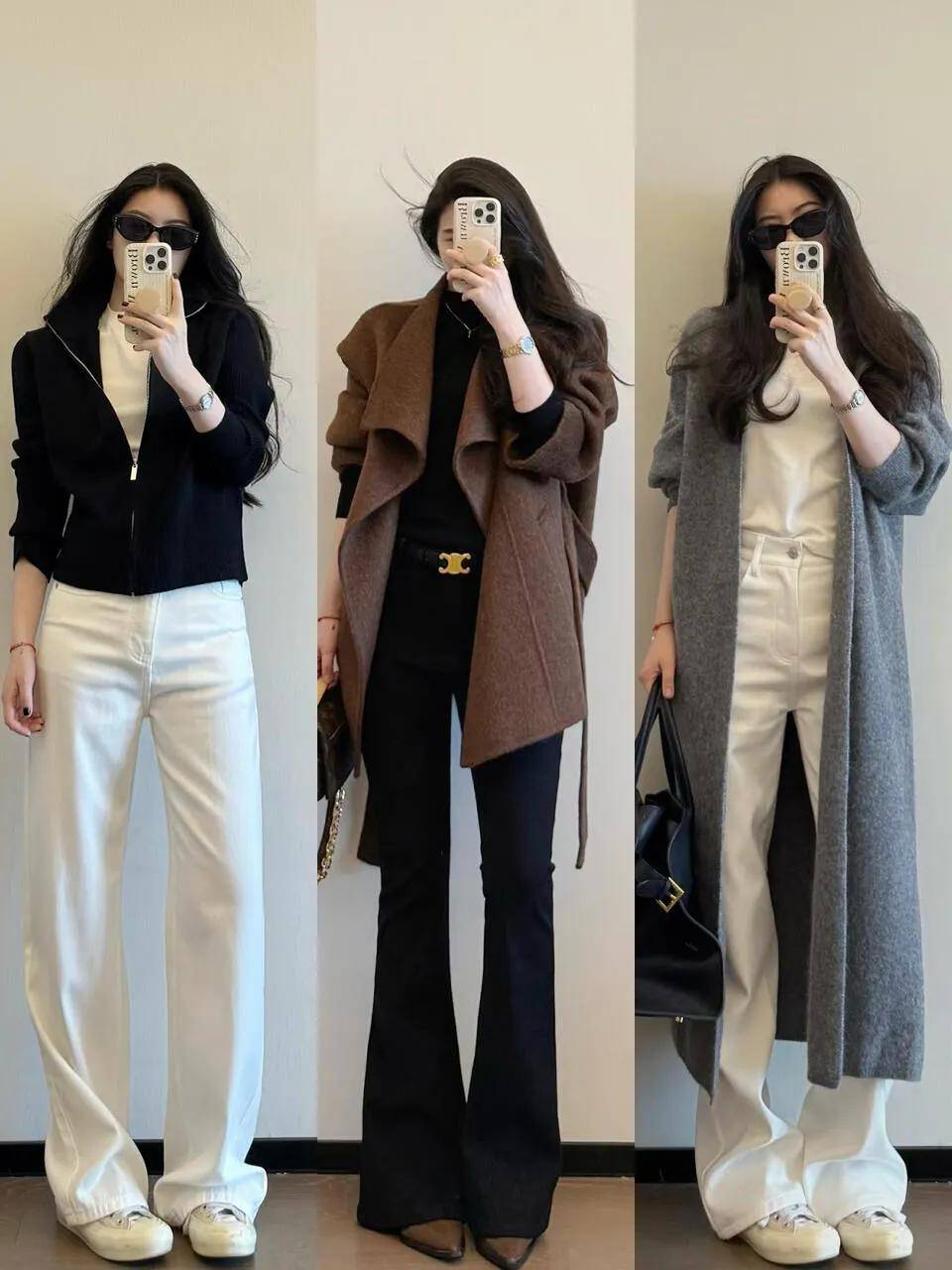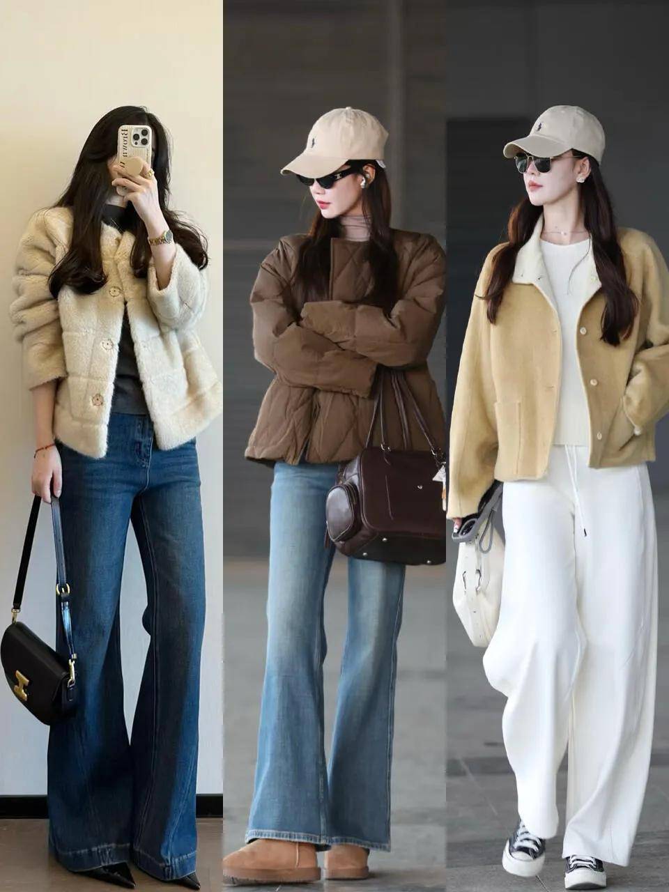包包:同色系包包(如米白阔腿裤+米白包)显协调;黑白灰无彩色包包百搭,适合所有风格;造型单一可选个性包包(如流苏包、mini链条包),点亮整体。