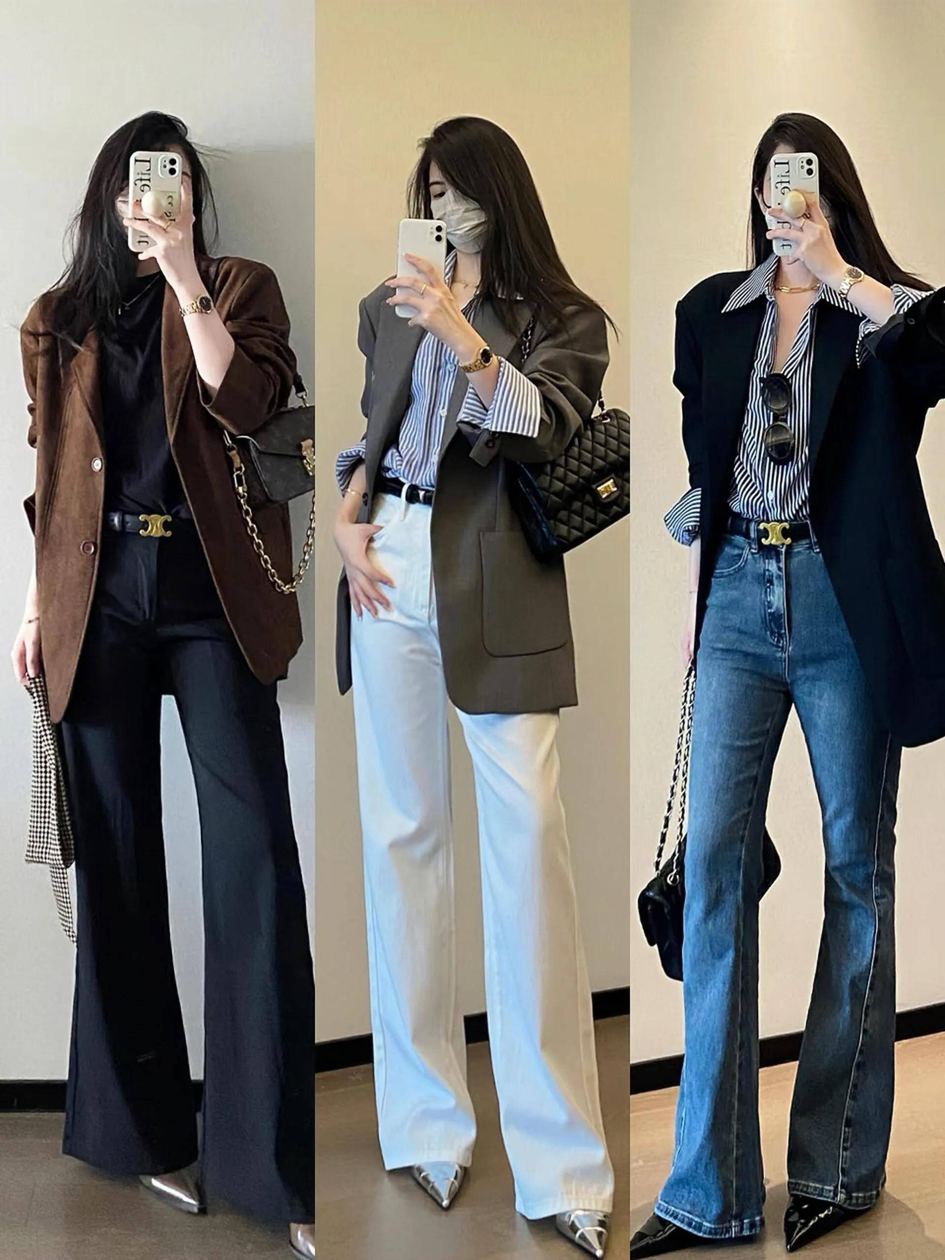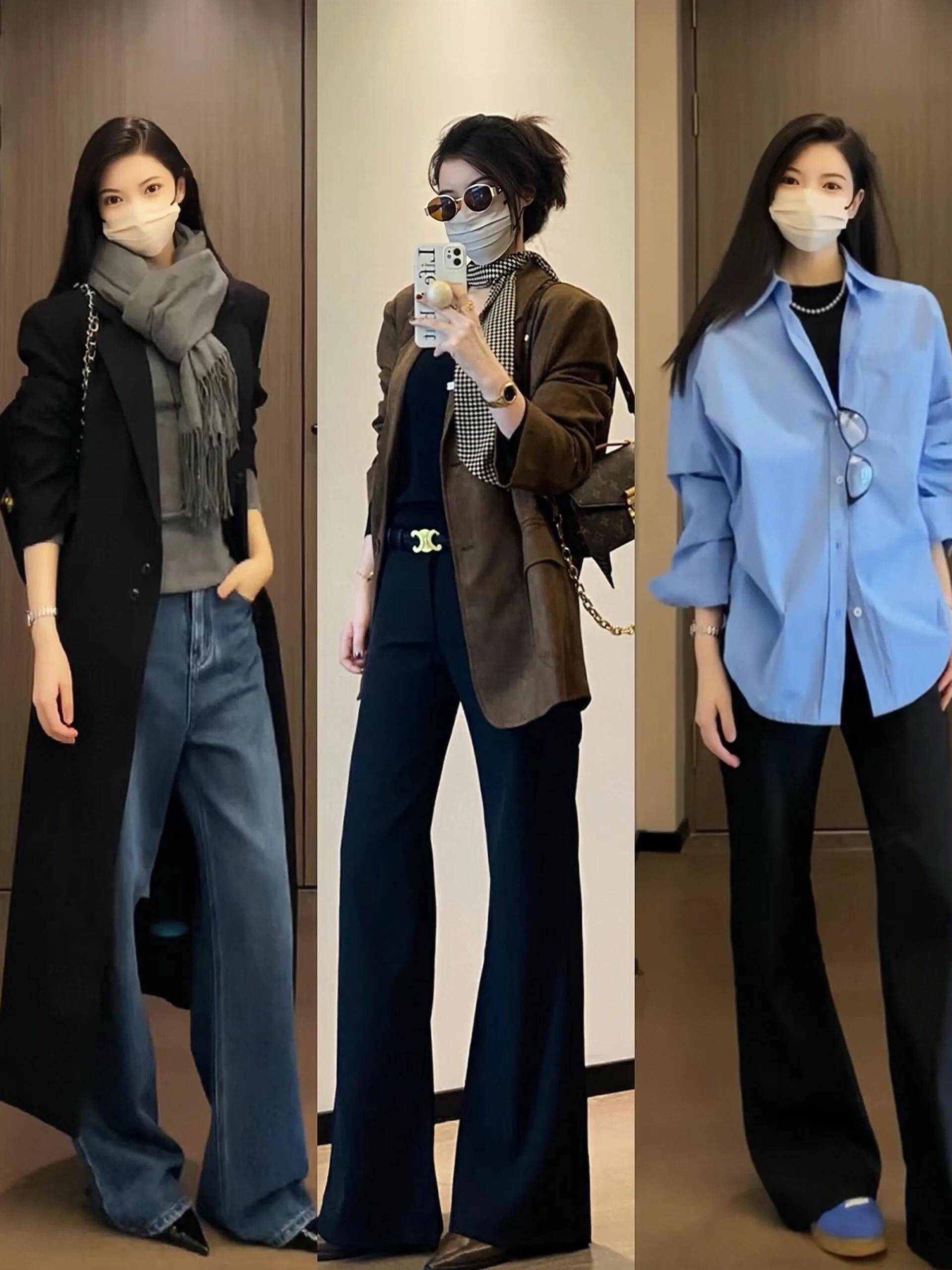 西装外套:短款西装外套+阔腿裤,干练专业,适合商务会议;长款西装外套+阔腿裤,气场全开,适合正式场合。