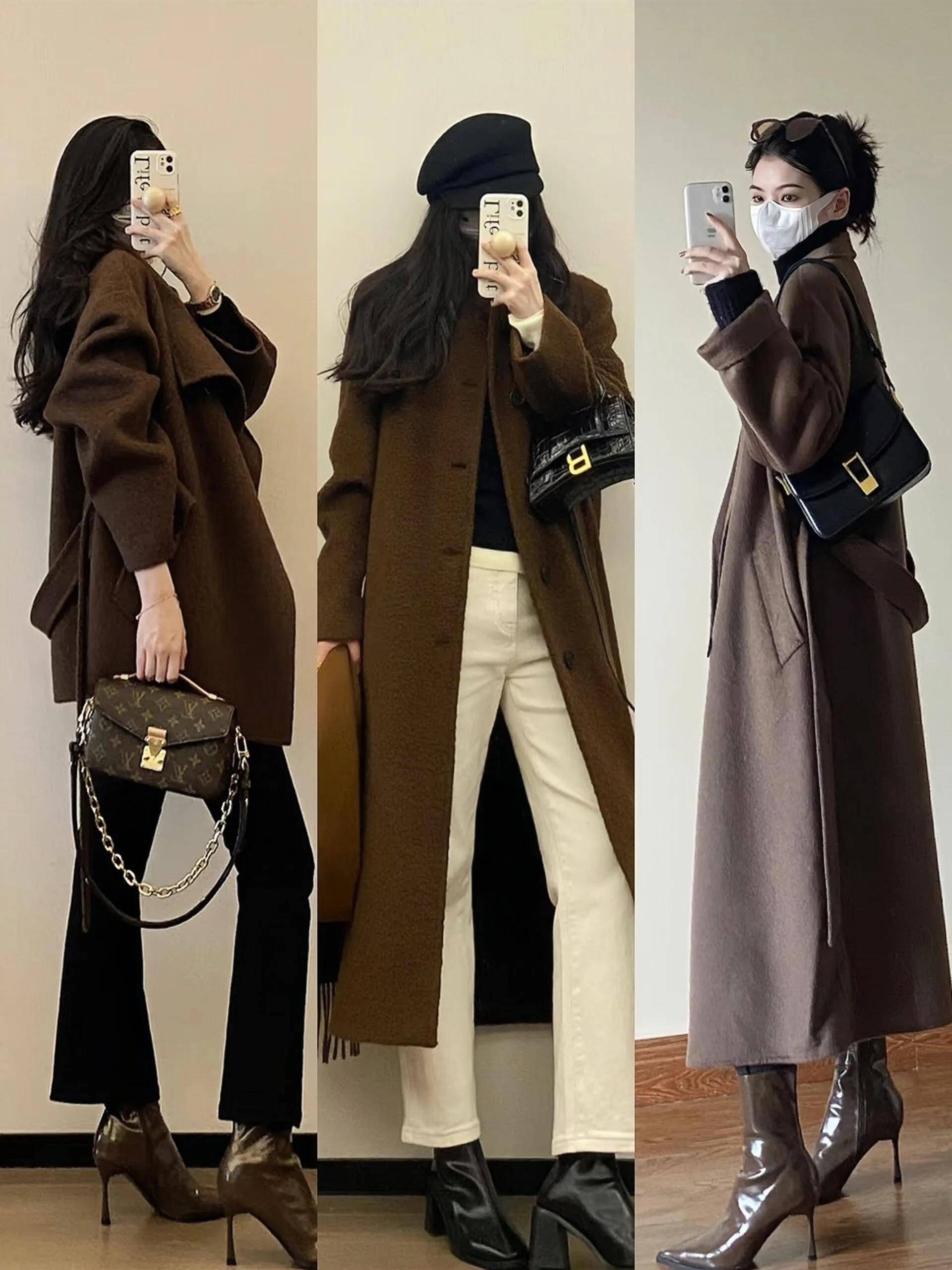 顺色搭配:同色系(如米白上衣+米白阔腿裤、黑上衣+黑毛呢阔腿裤)显高级,适合职场或正式场合;