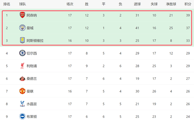 争冠形势:曼城紧追不舍,维拉成“黑马搅局者”