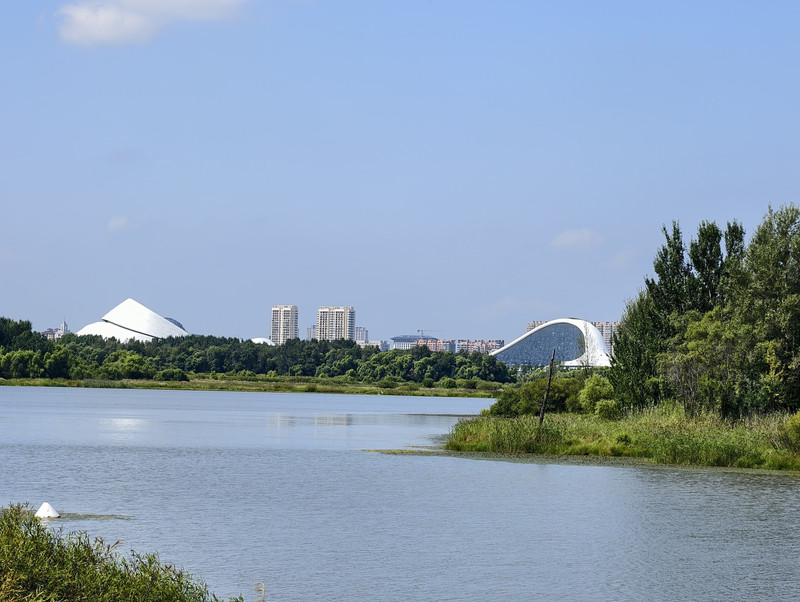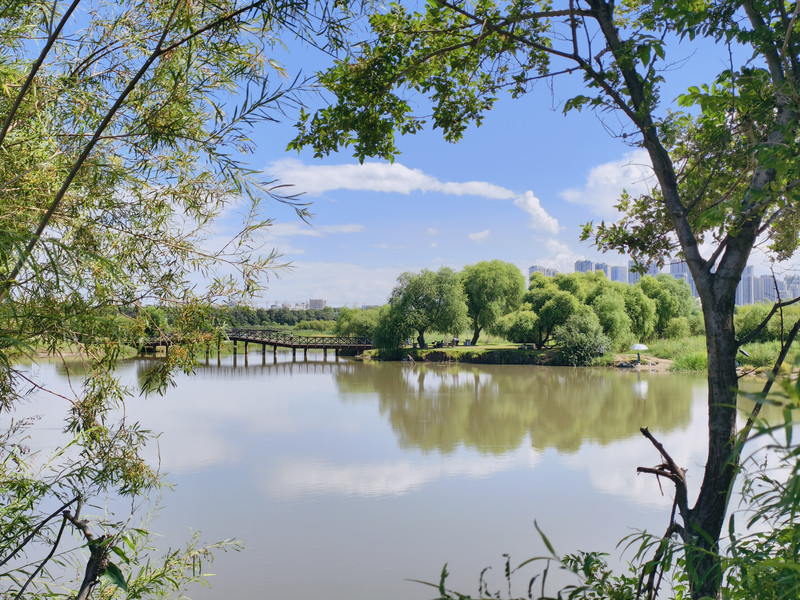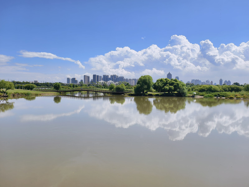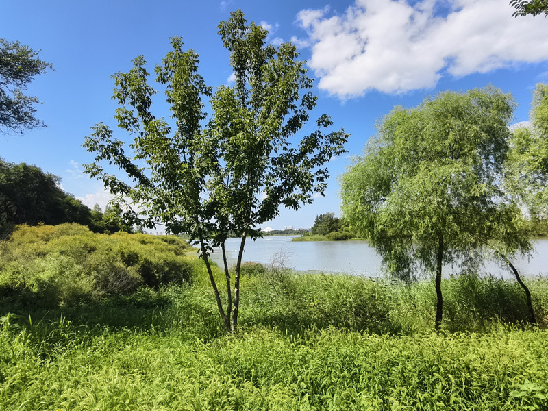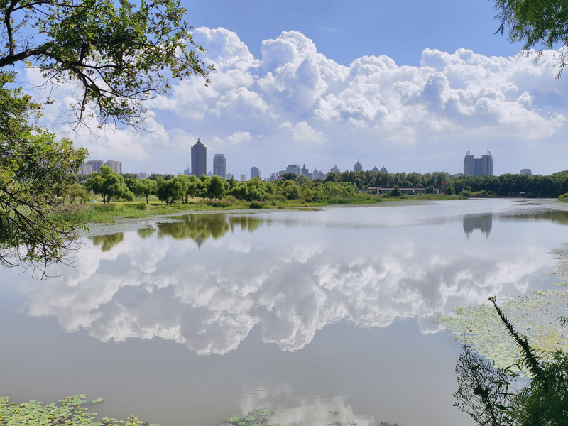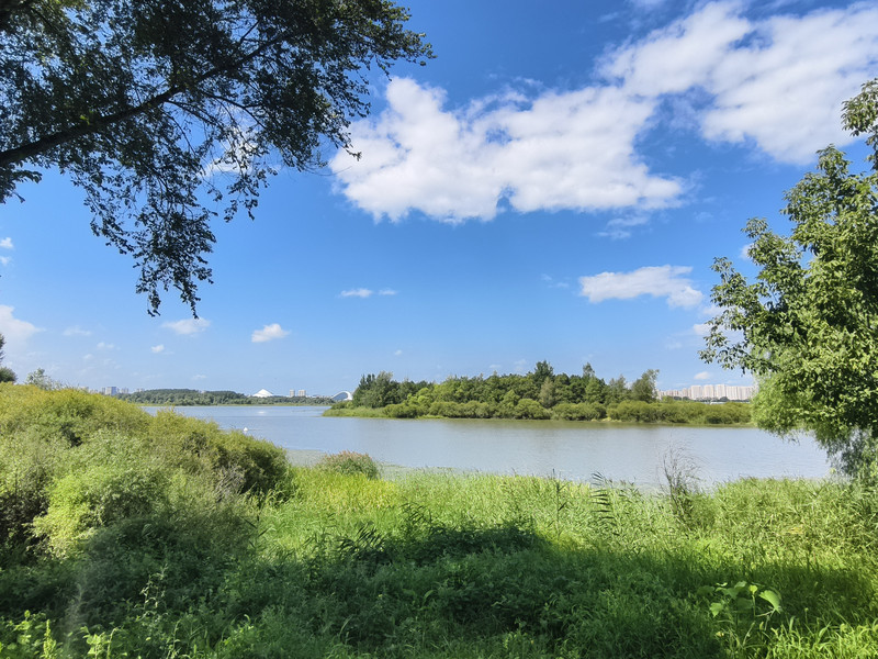 头顶上的蓝天白云有北方的大气,脚底下的湖面却有江南的婉约。