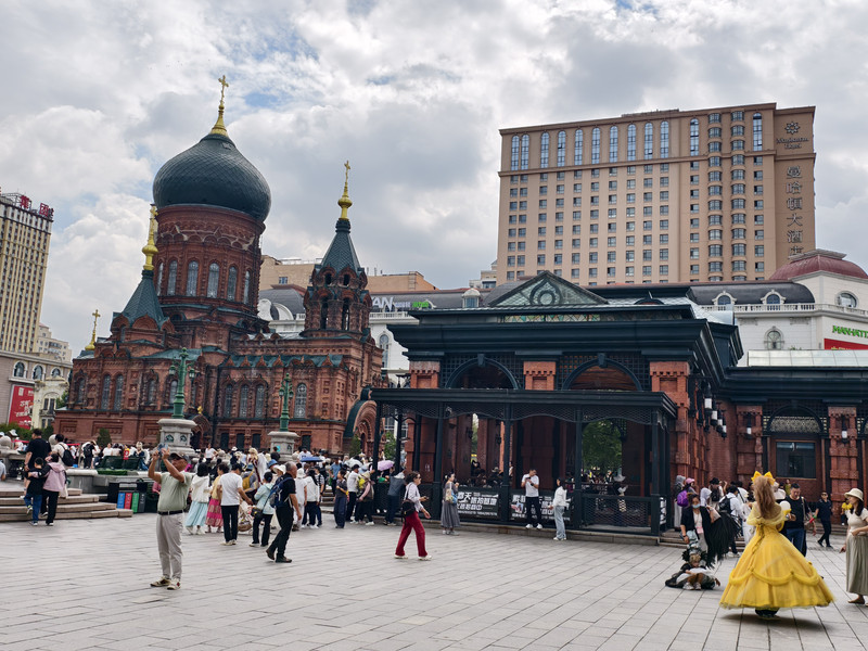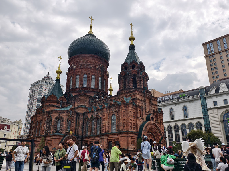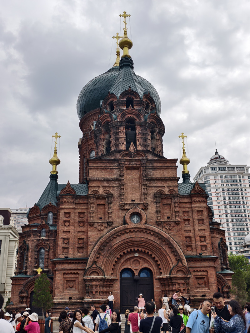 圣索菲亚大教堂始建于1907年,是目前中国保存较为完整的拜占庭式建筑,拜占庭风格的东正教堂,。她拥有典型东正教外观,墨绿色圆顶,包容又宏大;暗红色的砖,仍然整齐的排列着,严谨又精密。