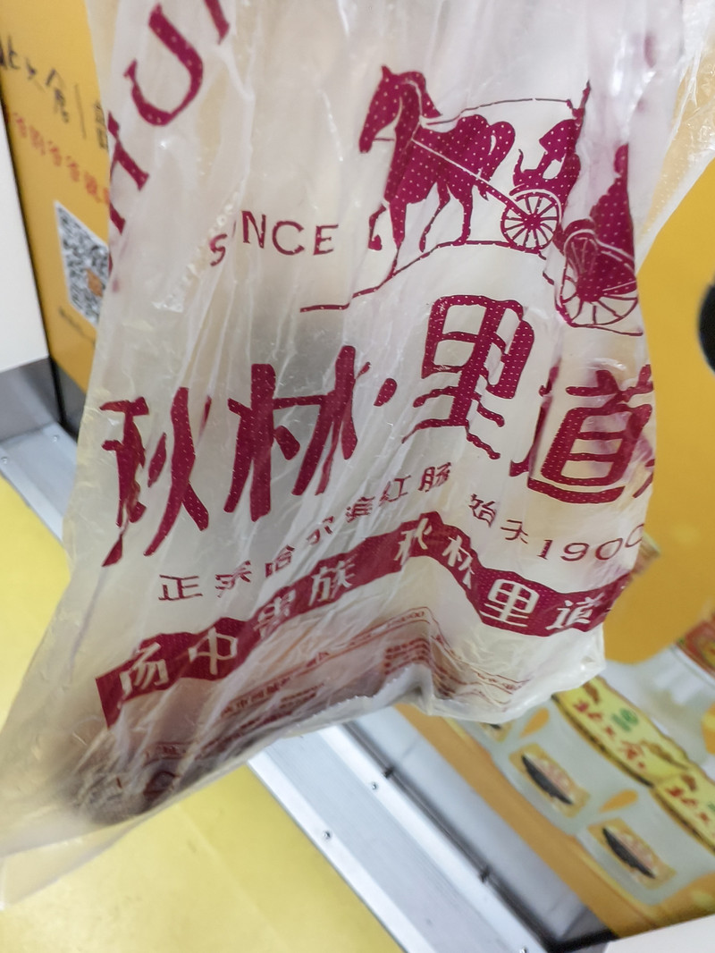 坐地铁去太阳岛,在路上购买了秋林里道斯的红肠当午餐。