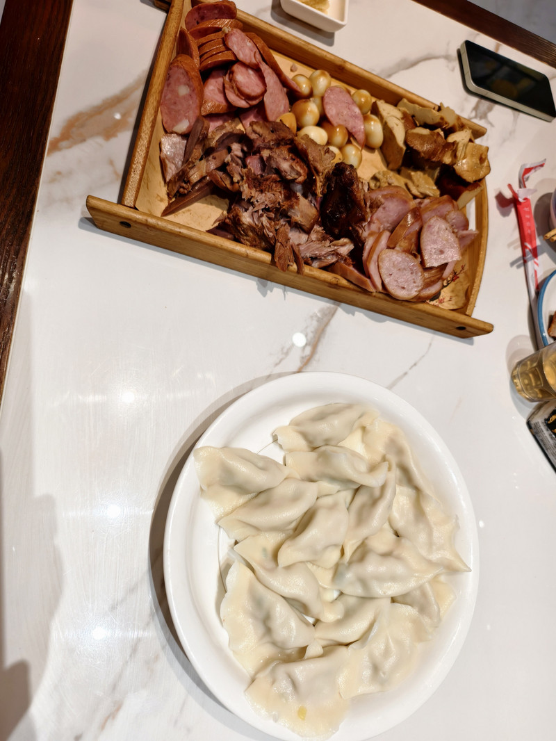 帅哥点的是一盘卤拼,一盘三鲜水饺。帅锅客气,非让我尝尝,这水饺尝的我终身难忘,比后来吃的东方饺子王好吃。