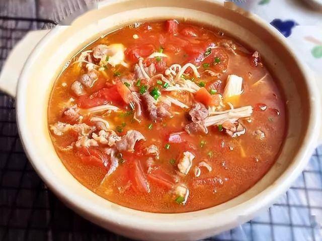 番茄去皮炒出沙(汤底更浓),肥牛焯水变色即捞(避免老柴),金针菇提前焯软(去腥味)。