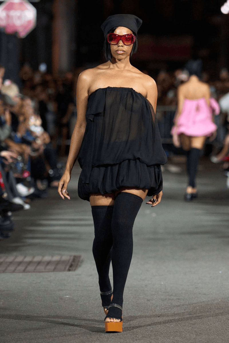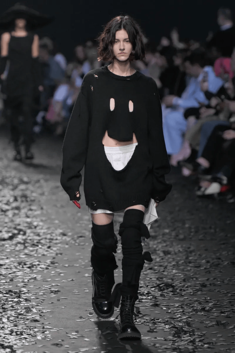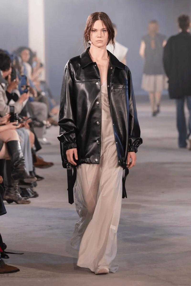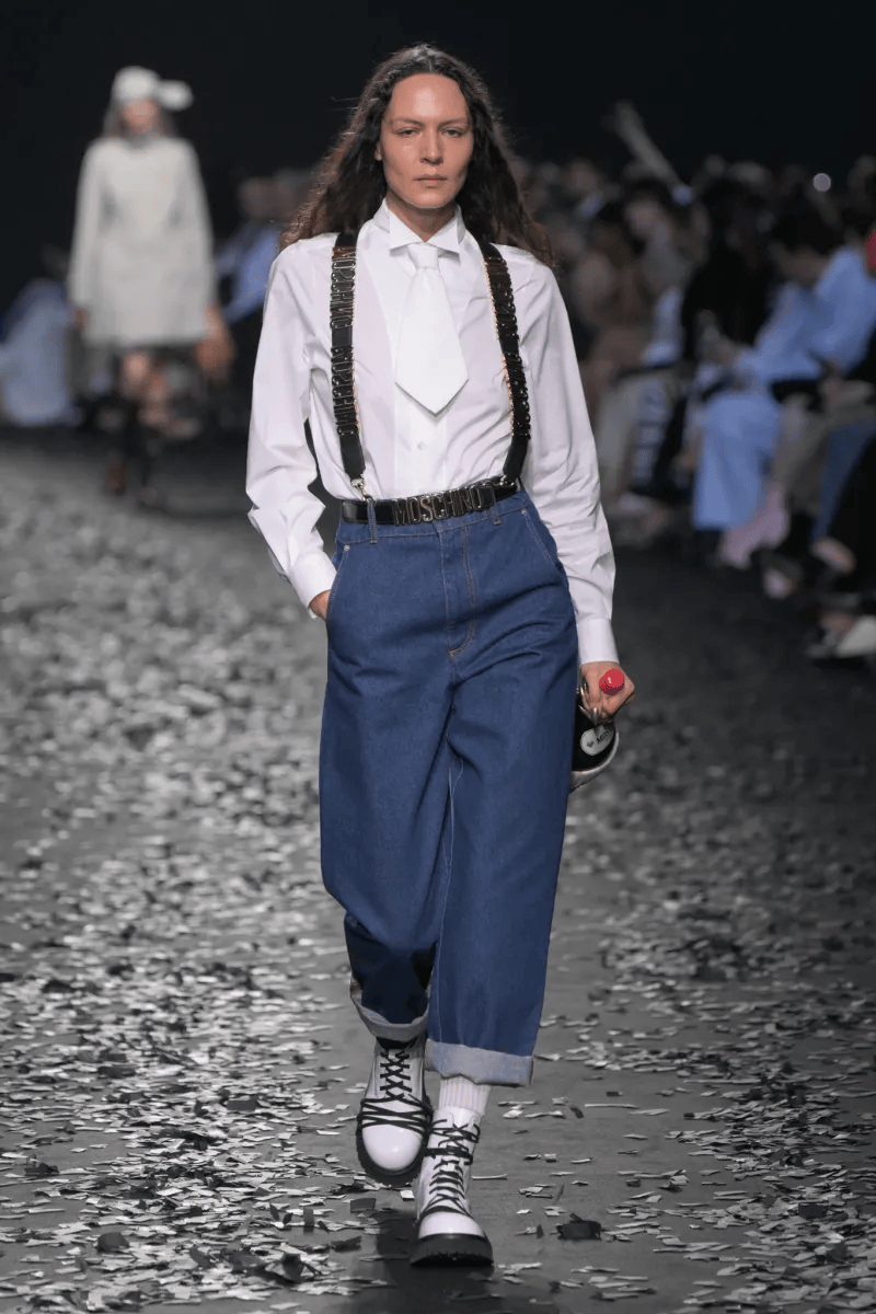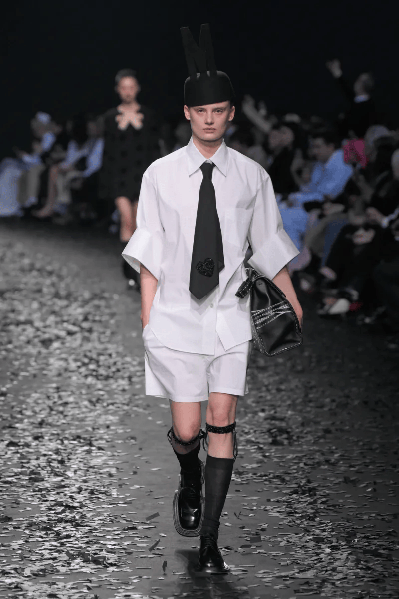 符号重构:经典翻领、双排扣等学院元素被注入 oversized 轮廓、荧光镶边或泼墨印花,将秩序感转化为个性化宣言,如同“绅士外套染上摇滚血液”。
