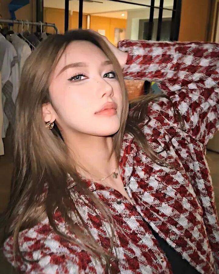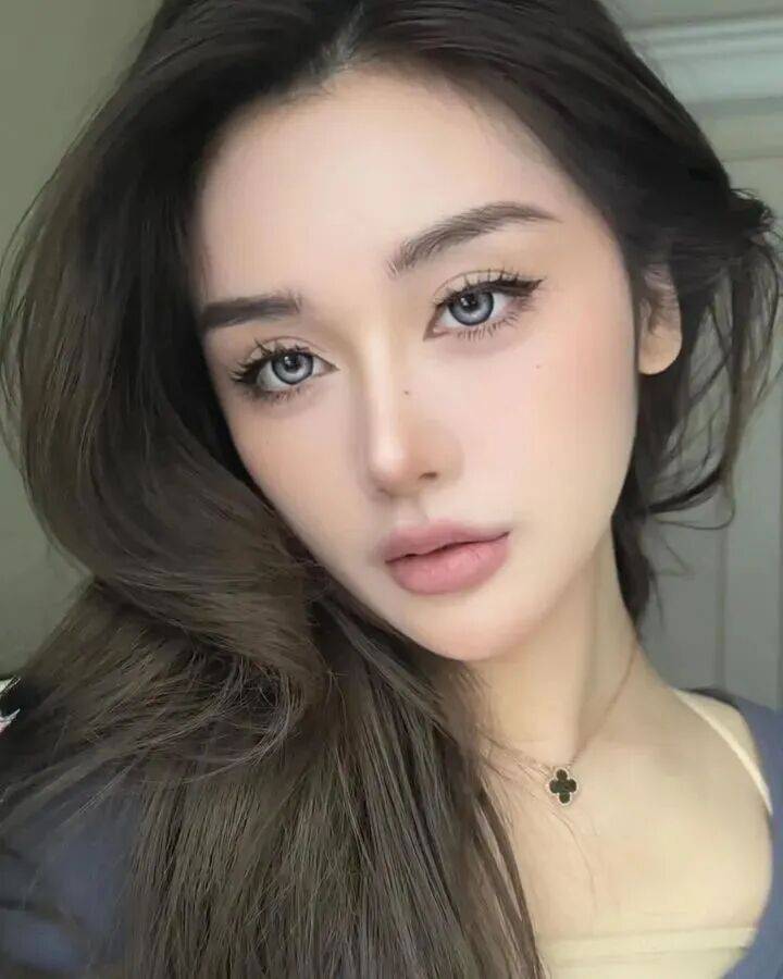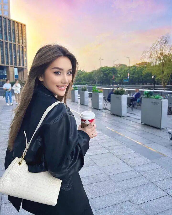 2. 核心颜值特质:东西方五官优势融合,既有西方立体深邃的轮廓(高鼻梁、凹陷眼窝、琥珀色挑眼尾眼眸),又有东方女性的柔美(细腻白皙肌肤、饱满柔和唇形、浅笑梨涡),能无缝驾驭浓颜御姐与清新少女两种妆造,辨识度极高。