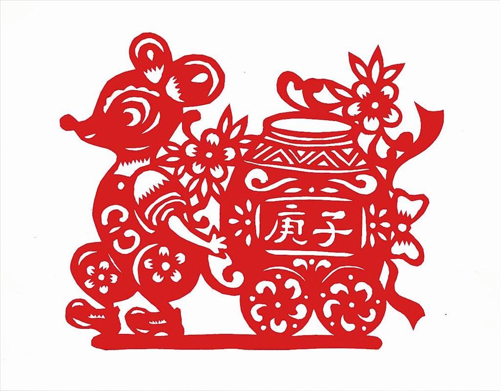 剪制《庚子鼠》剪纸,呼应生肖主题,传递祝福。
