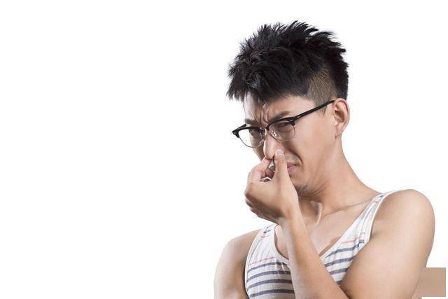 🖼️ 图片7:条纹背心男捏鼻子,表情嫌弃