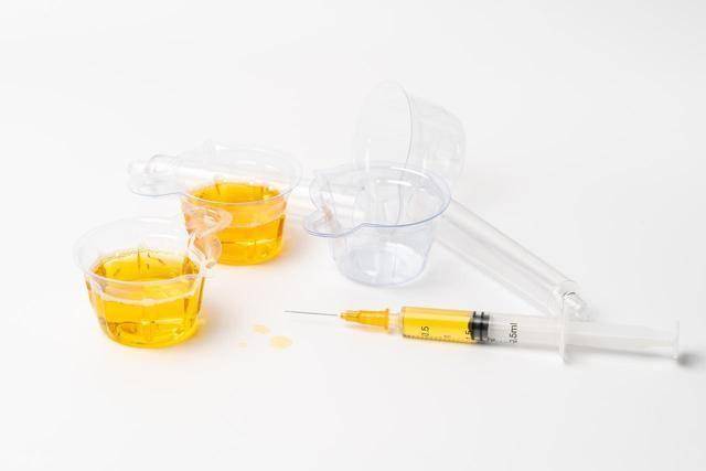 🖼️ 图片3:三个黄色尿杯 + 注射器 + 漏斗