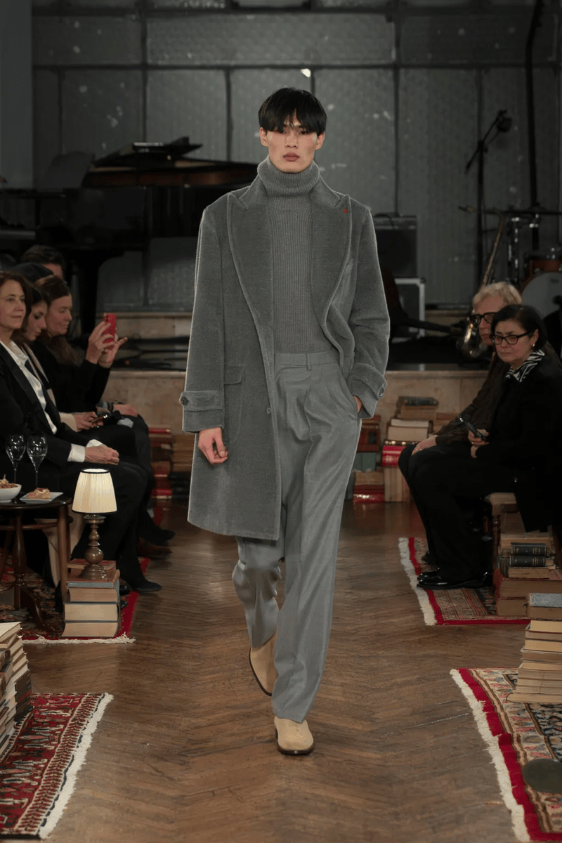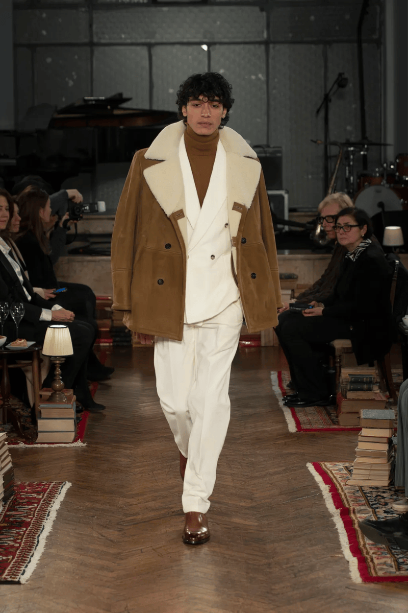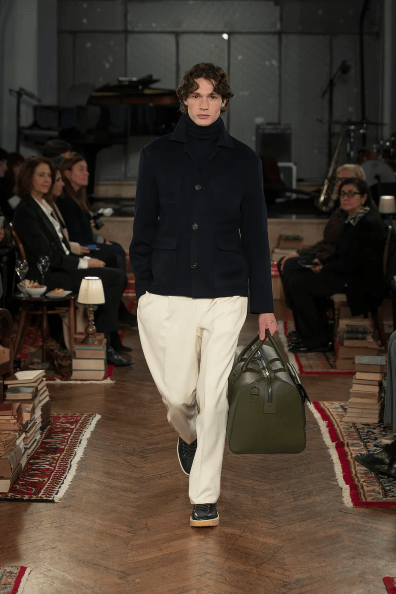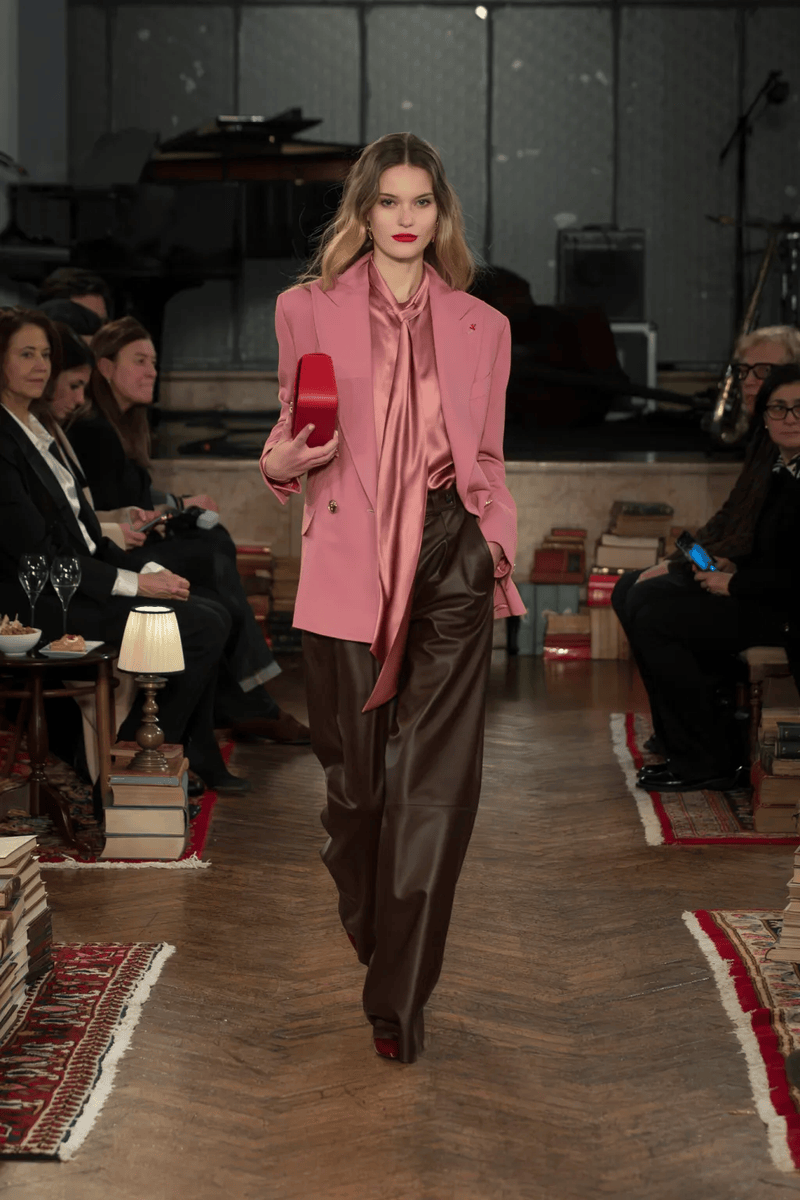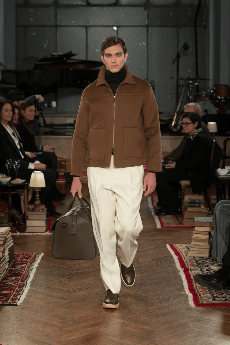 西装的结构变奏:西装套装依然是职场与休闲场合的万能牌。本季更注重廓形实验(宽松阔肩、收腰设计对比)和材质混搭(如羊毛呢与皮质镶边、灯芯绒纹理),模糊正式与休闲界限。
