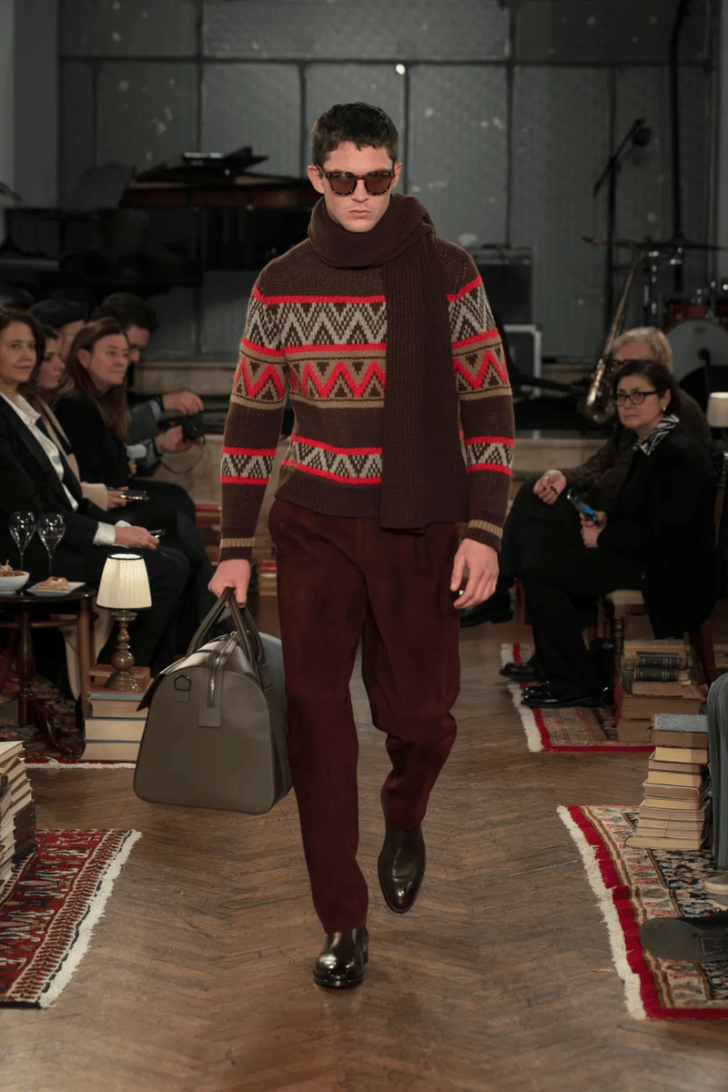 全球手工艺复兴:民族风提花、手工刺绣、流苏、编织元素被大量运用于针织衫、外套甚至配饰上。灵感源自北欧、东欧、游牧民族等传统工艺,强调手工温度与独特叙事,为整体造型注入异域风情和艺术感。