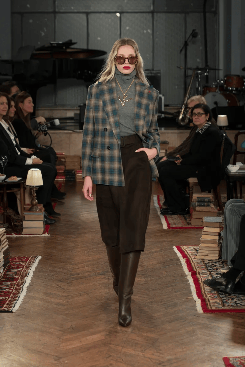 复古格纹的摩登表达:经典苏格兰格纹、千鸟格、威尔士亲王格以全新面貌回归。创新方式包括:超大尺寸格纹、非传统色彩组合(如粉彩系格纹)、或作为局部点缀(如大衣内衬、半身衣片),避免老气。