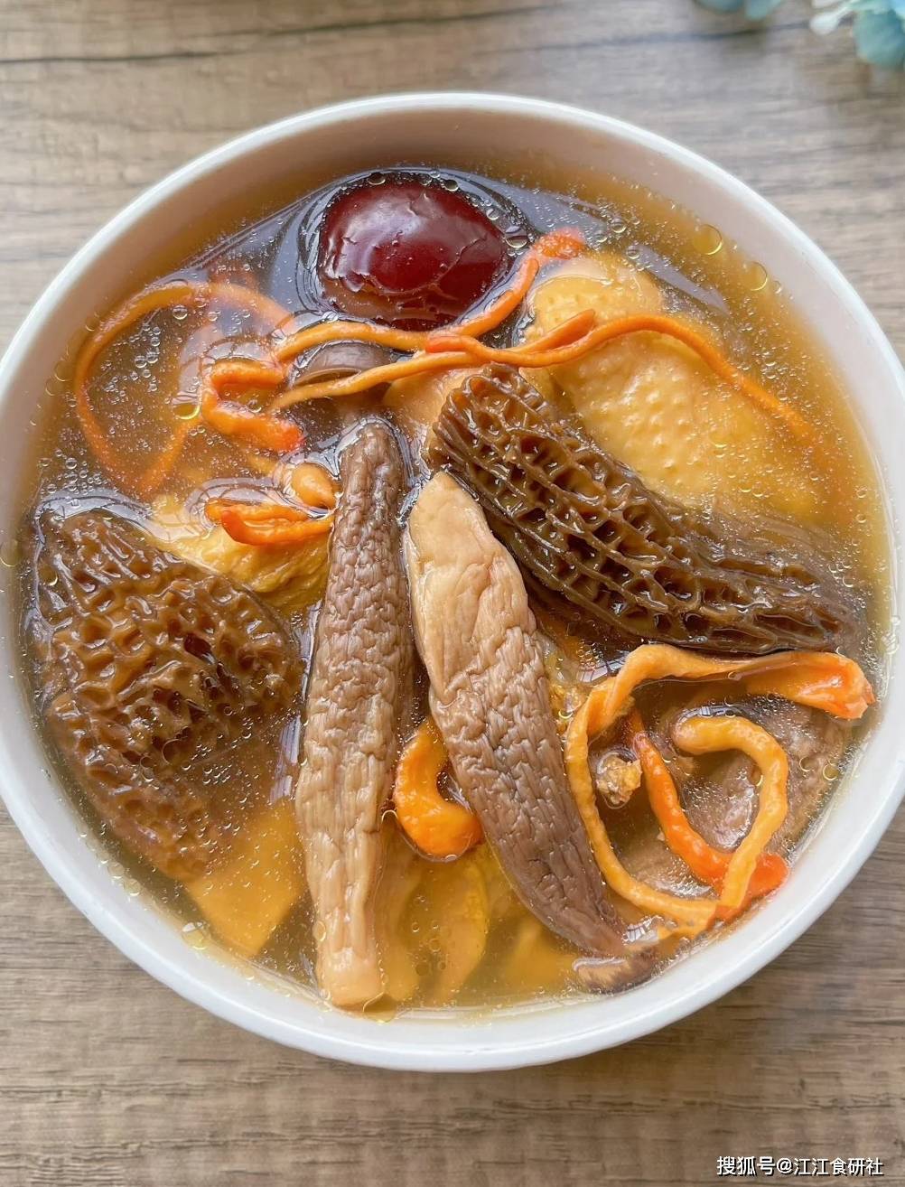 菌菇联盟:羊肚菌、虫草花、鹿茸菇,自带山野鲜气,提升汤的鲜甜。