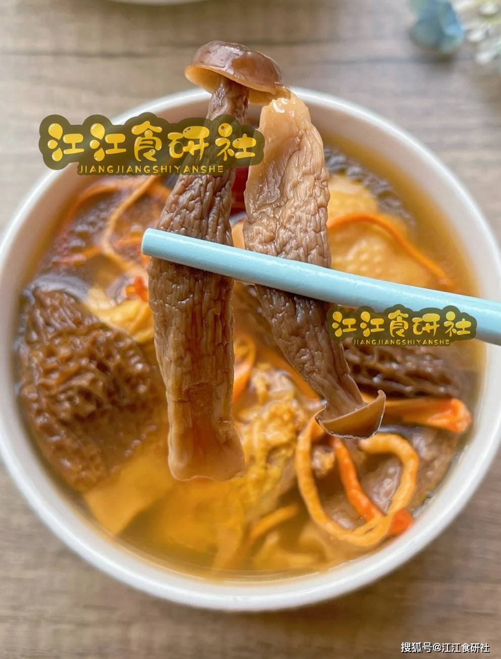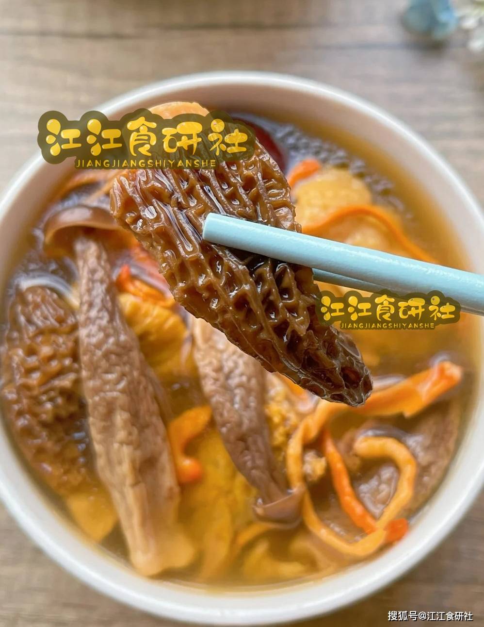 妙处在于那一把“菌菇联盟”:羊肚菌、虫草花、鹿茸菇。
