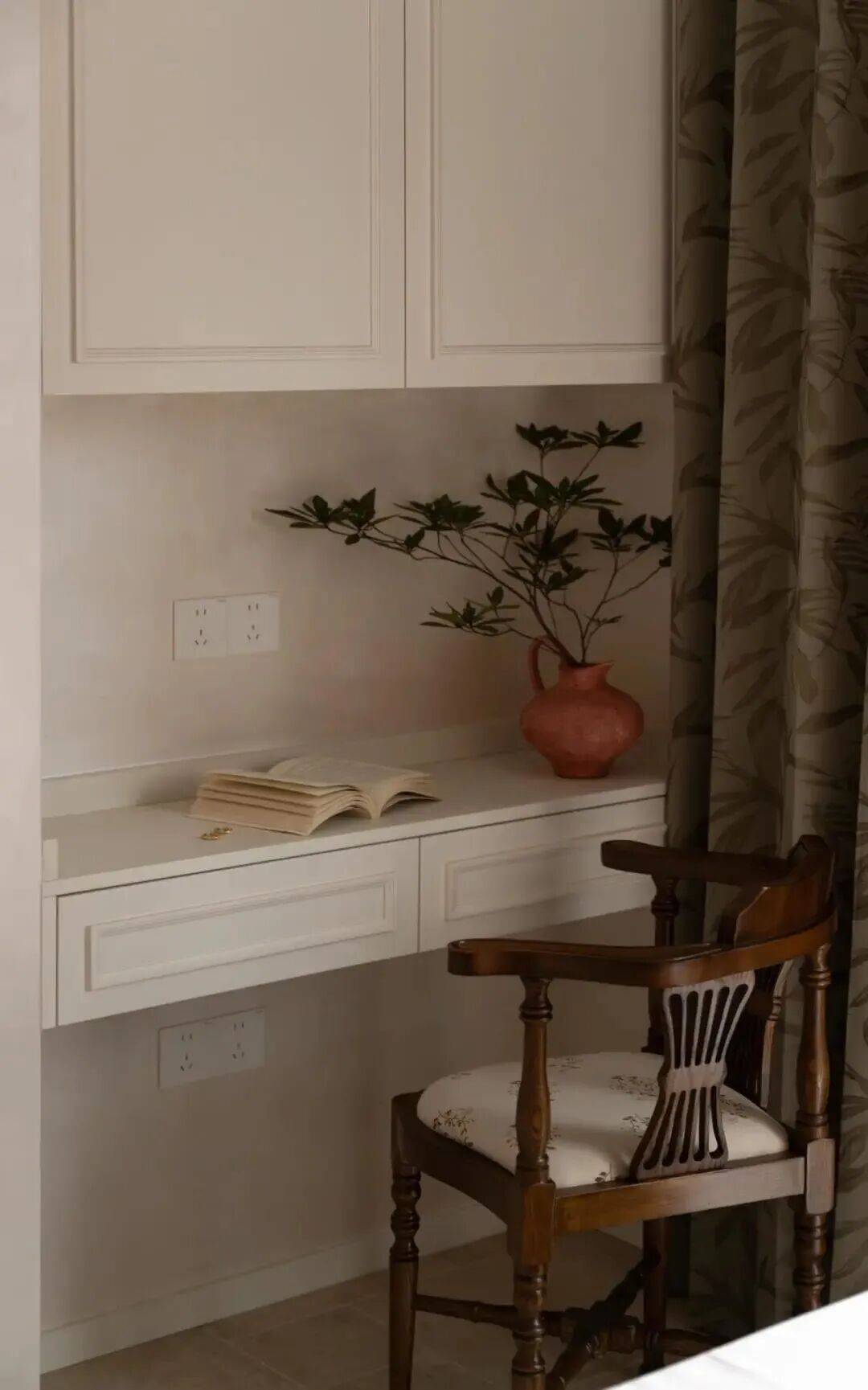细节设计:Z字形墙体隐藏化妆台、L型柜门隐藏卫生间、玉脂白开关面板呼应玉石质感……每一处细节都暗含对母亲生活习惯的尊重与重构。