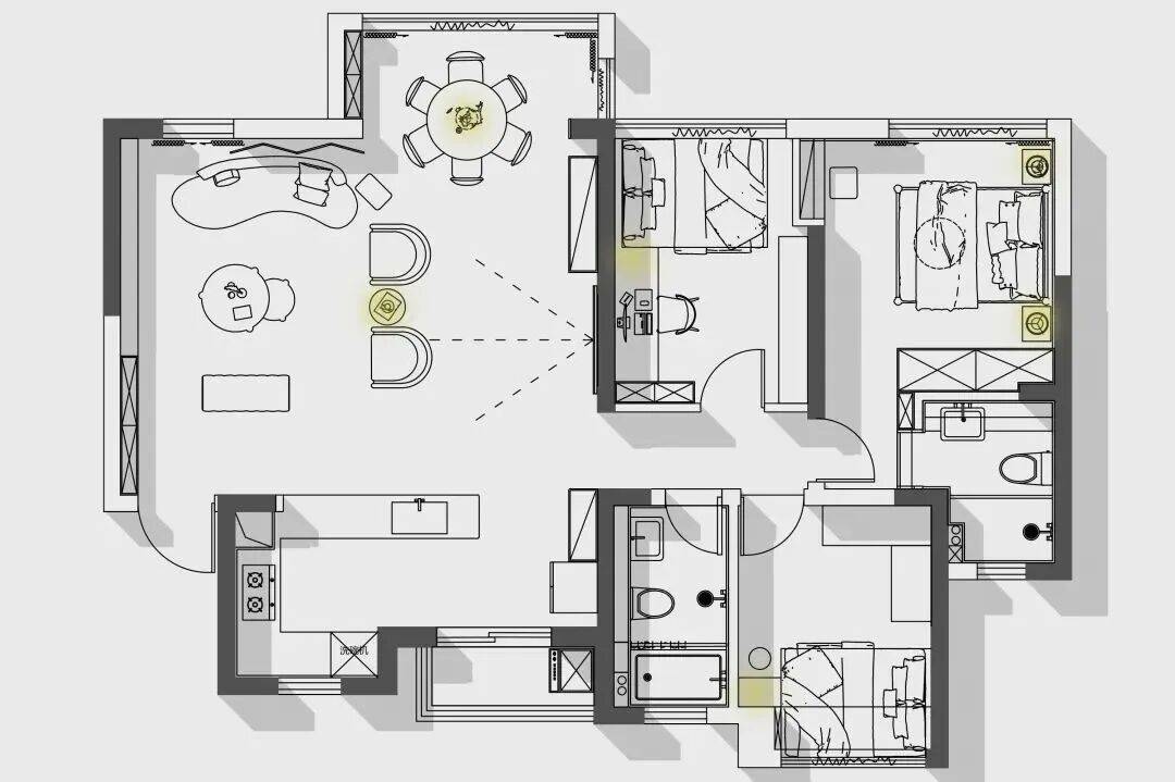 控制成本与完成度:通过旧材新用(如缩小自身房间)与标准化产品(如施耐德电气开关插座)实现106㎡空间的高完成度。