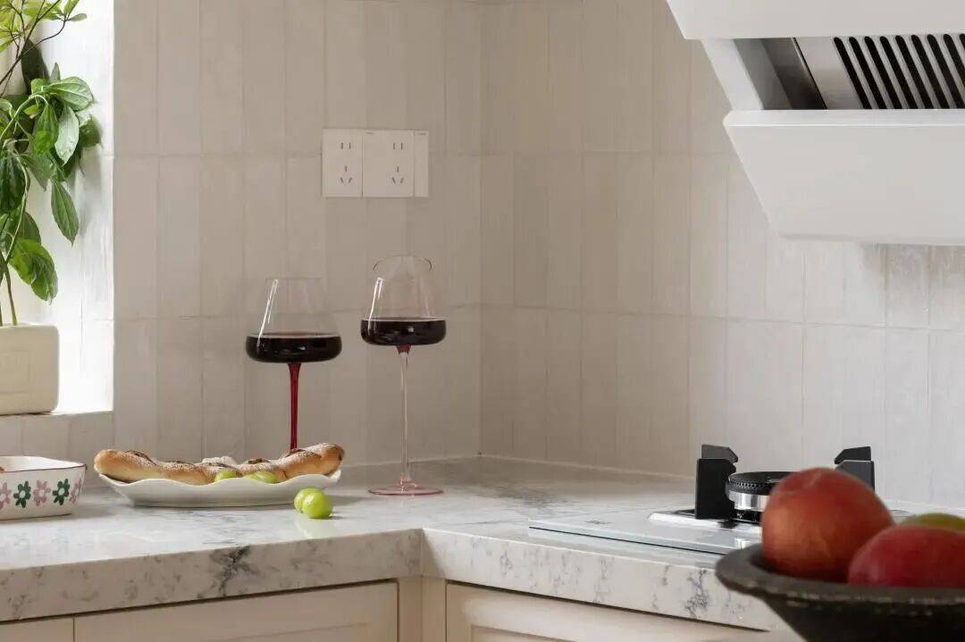 开放式厨房:以“健康陪伴”为理念,通过双水槽设计促进母女协作,施耐德电气开关插座的防水防油特性暗含对母亲安全的考量。
