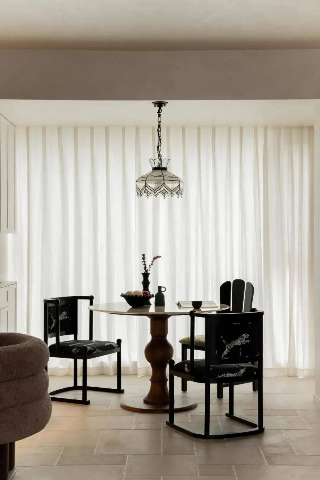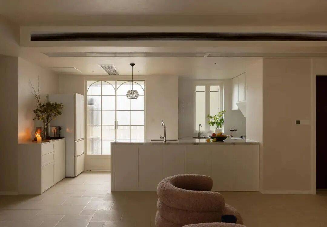 空间逻辑:通过“打破常规布局”(如开放式厨房、无电视墙客餐厅)与“细节藏心”(如Z字形墙体、隐藏式化妆台),构建出“松弛感”与“精致感”平衡的私密场域。
