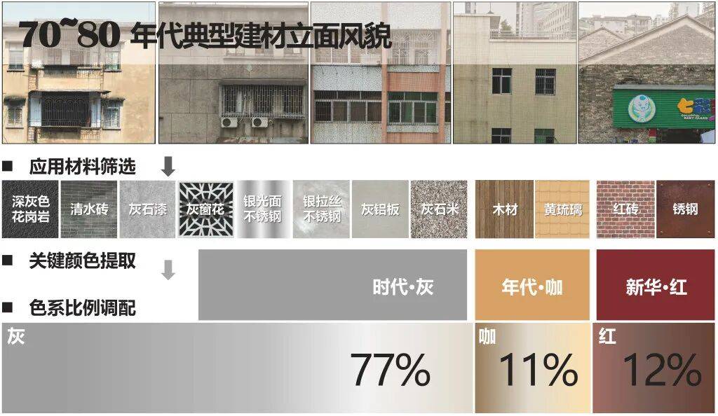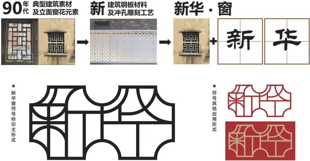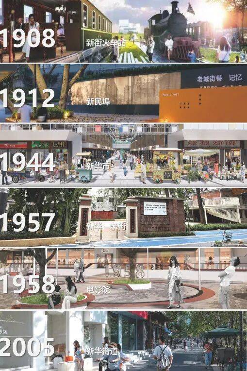 从老城生活照片,新旧建筑材料,展示出新华片区的发展历程,至2023年立项改造提升,经过政府引导各界合力共同打造一个崭新并带有历史记忆的崭新片区。