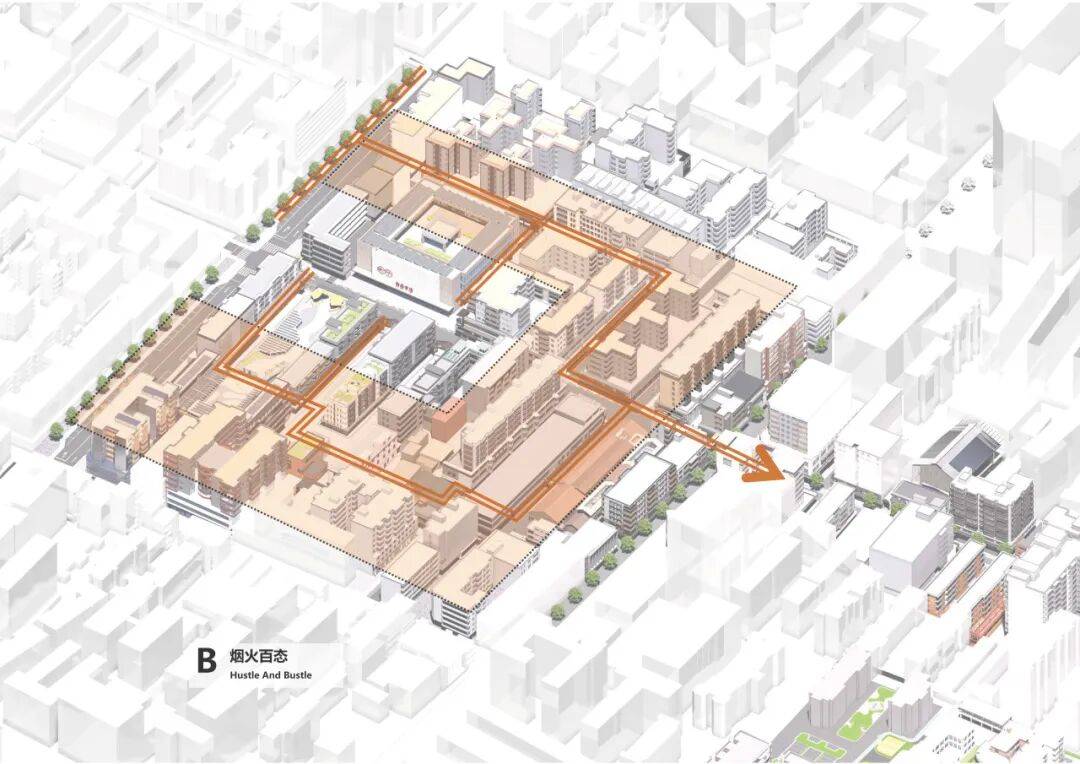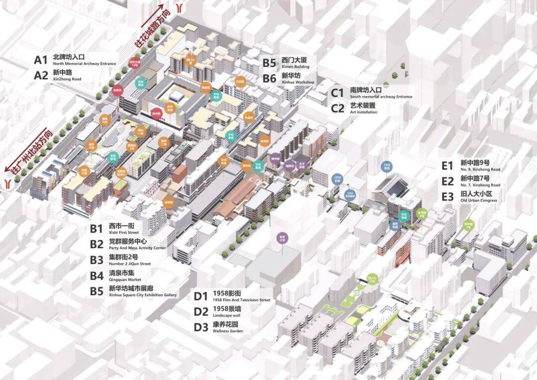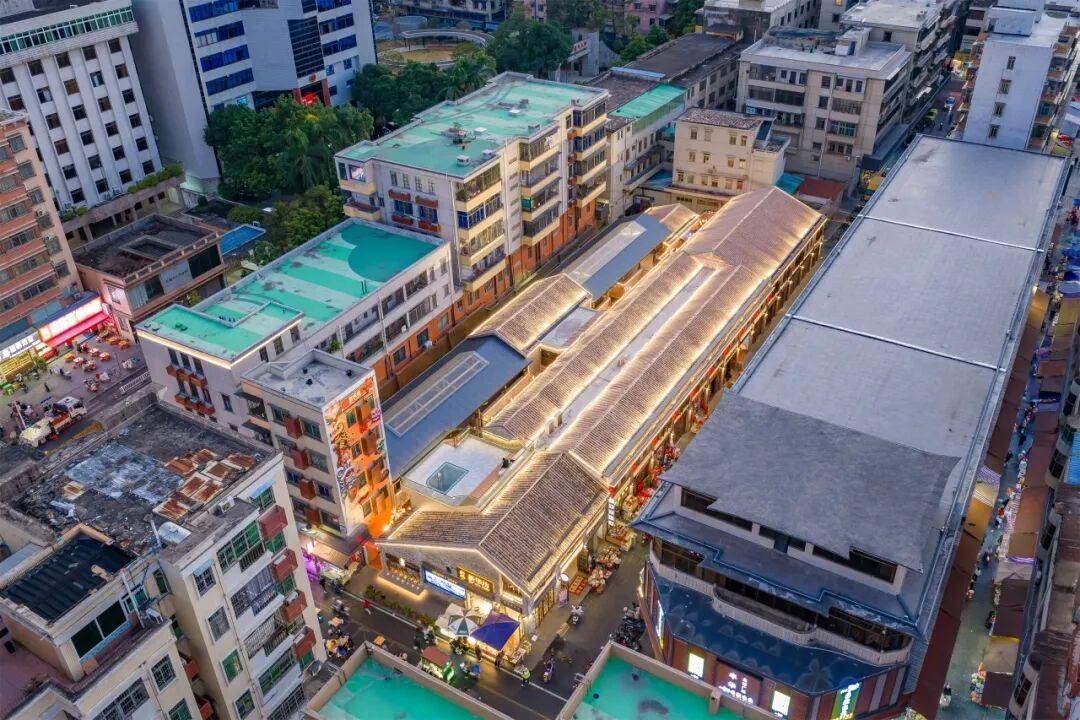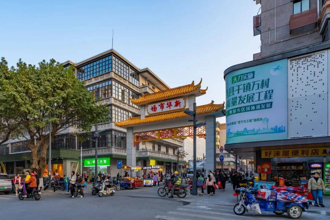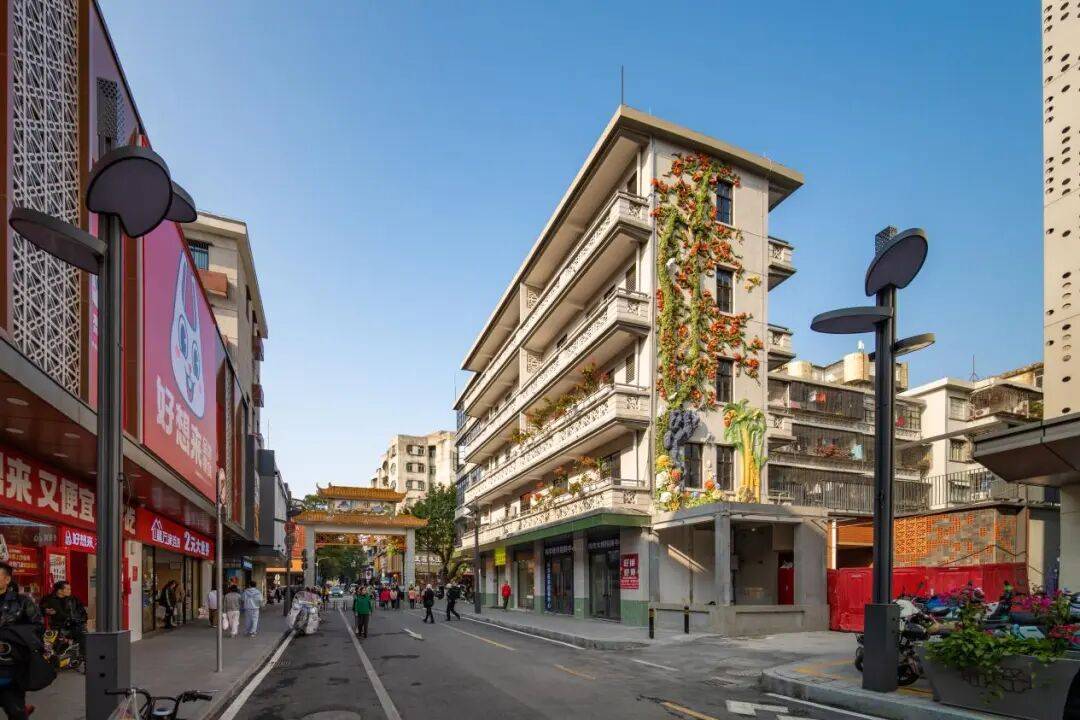 新华市场片区:改造中保留传统墟市肌理,通过牌坊彩绘、青砖立面修复,打造“烟火中轴”特色商业带;