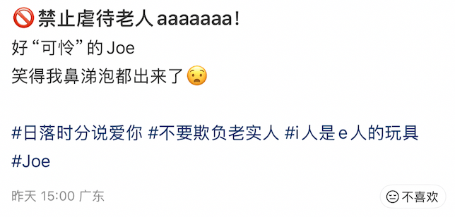 网友纷纷调侃Joe“为不懂拒绝买单”,Joe则在小红书回复“这个单够一个gj开销一年了”,暗指约会带来的负担极大。这些行为让刘玫成为节目开播以来争议最大的嘉宾,「绿茶」标签也迅速发酵。