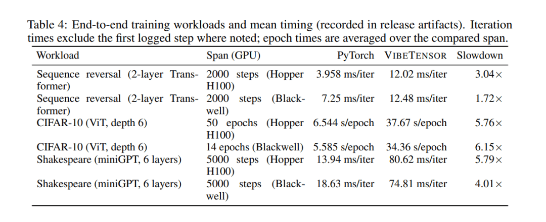需要强调的是,作者非常克制:他们反复声明VibeTensor性能明显落后PyTorch,也不适合生产环境。