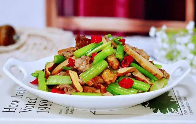 喜欢吃辣口味也可以加点辣椒,这样会更下饭哦!豆干肉片芹菜小炒