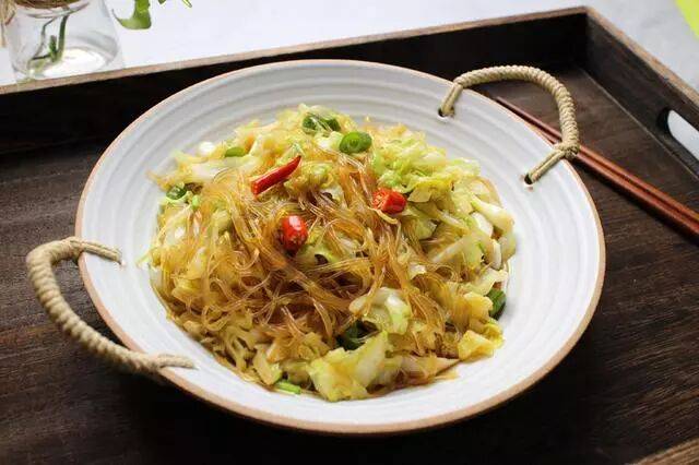 小贴士:这道小炒整个烹饪过程要大火快速翻炒哟,这样炒出来的菜口感才好吃。粉丝炒包菜