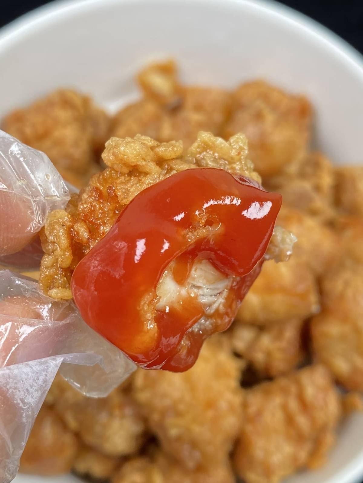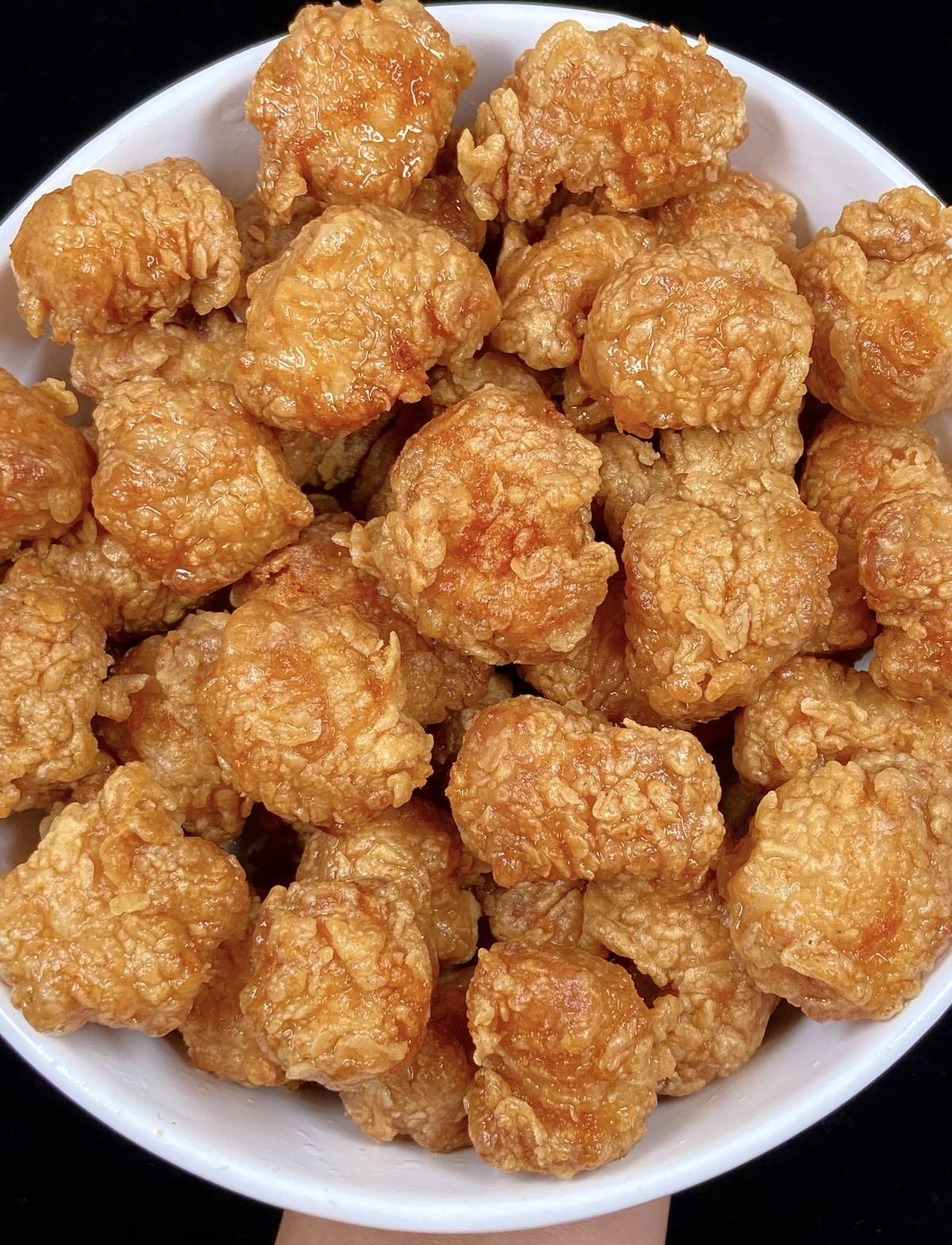 当油温升至五六成热(约160-180度),筷子插入油中周围冒起密集的小泡时,就可以开始下锅了。将腌好的鸡丁倒入裹粉碗中,像给婴儿穿衣一样温柔地抓拌,让每一粒鸡肉都均匀地穿上那层“金甲”,抖掉多余的浮粉。分批次将鸡米花下入油锅,避免粘连。初期不要急于翻动,待其定型并浮起后,再用漏勺轻轻推动。保持中小火慢炸,直到表面金黄酥脆,捞出沥油。为了达到极致的酥脆感,可以进行复炸。将油温升高至八成热,把炸好的鸡米花再次倒入,快速炸约20-30秒,看到表面颜色变得更加深金黄、外壳更加硬挺时,立刻捞出。