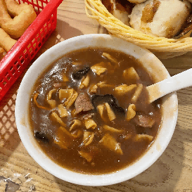 主打正宗河南胡辣汤,传承中原风味,选用牛骨慢熬浓汤,加入牛肉片、粉条、木耳、海带丝等食材,再淋入秘制胡辣酱汁,熬煮至浓稠入味,汤色红亮,麻辣鲜香,暖身又开胃,搭配刚出炉的油饼,外酥里软,是河南人早餐的经典搭配。