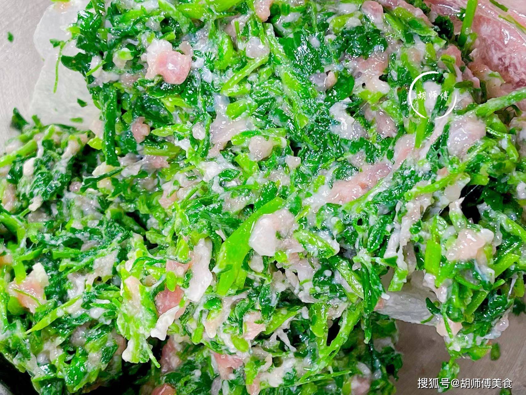 2、拌苜蓿饺子馅时,一定要放少许花椒水,加了花椒水,不仅可以使饺子吃着更香,而且馅吃着还特别嫩。