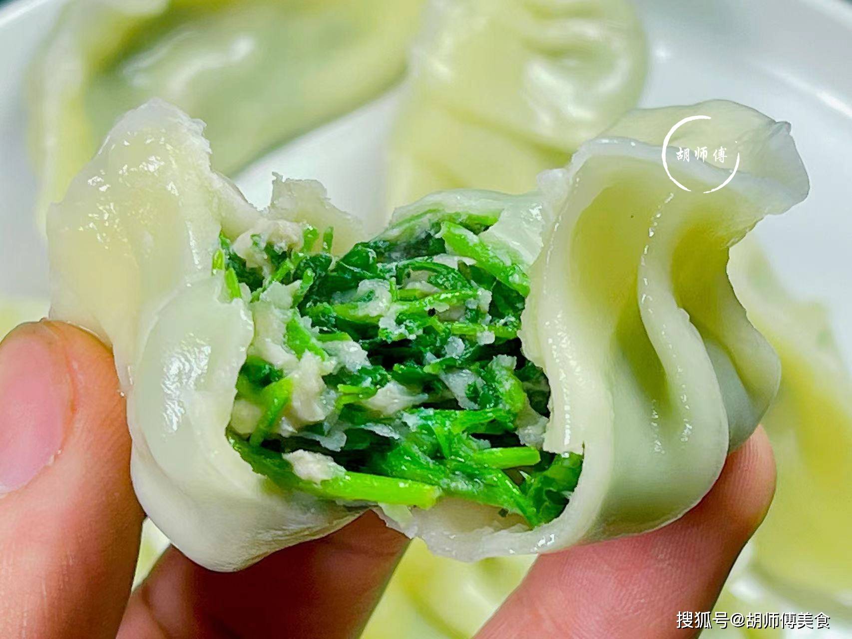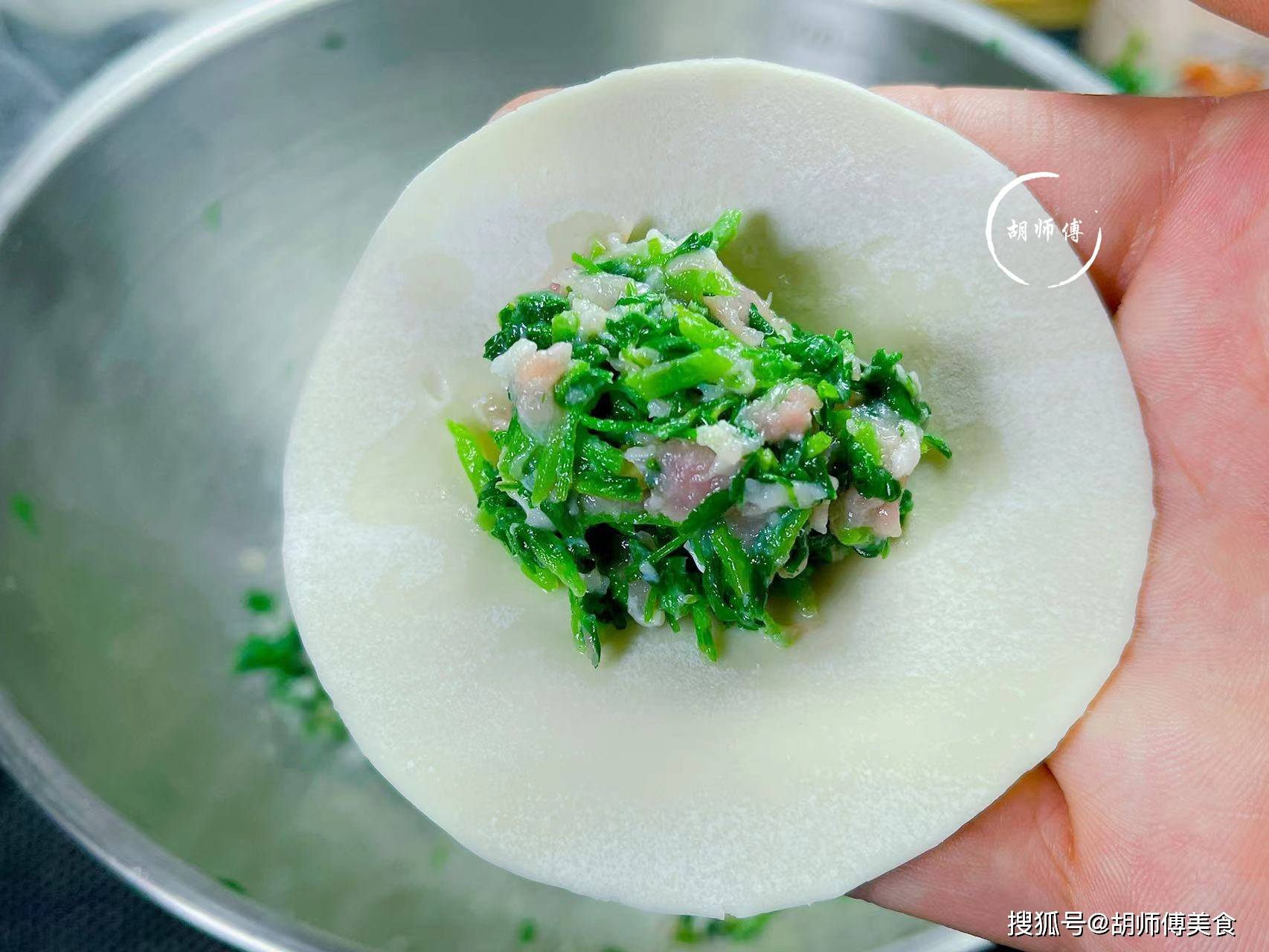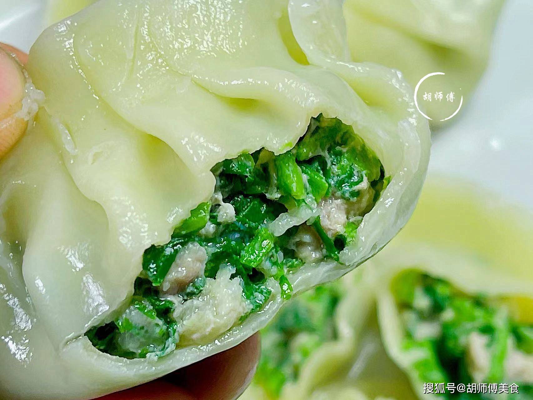3、包苜蓿饺子时,肉馅不要包的特别满,包饺子皮一半就可以了,包的太满了,吃着会有点腻。