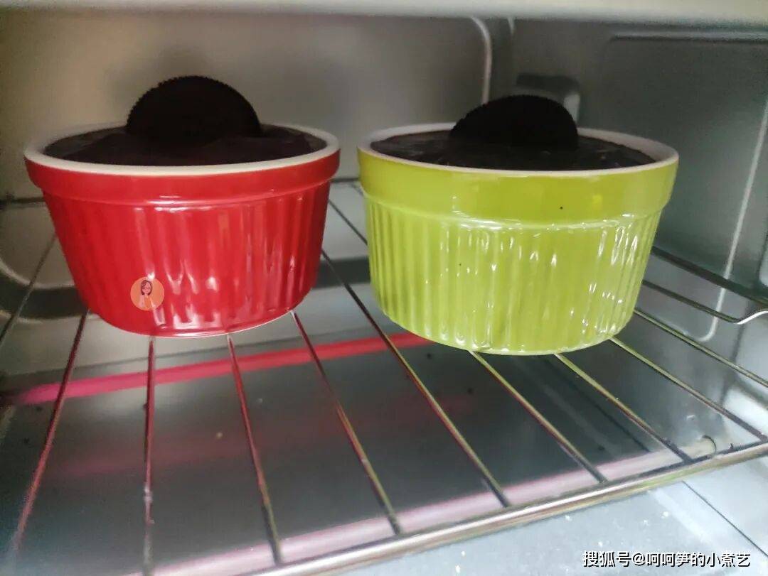 放入模具中,这里的量是两个舒芙蕾的杯子加上一个小寸纸杯蛋糕。