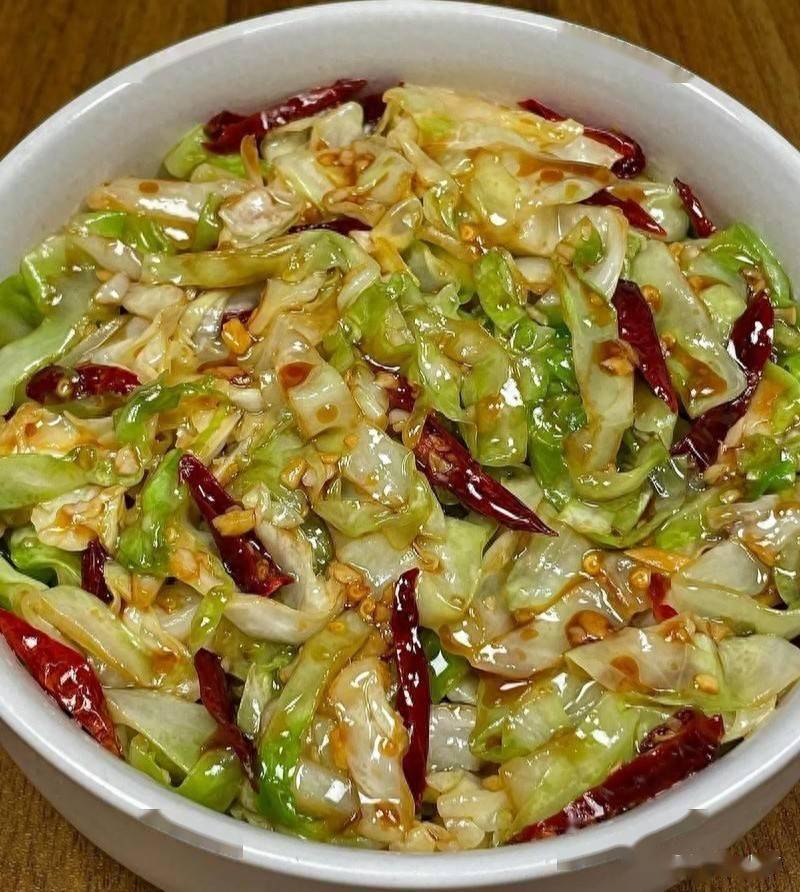 包菜12个、蒜末3瓣、干辣椒34个、生抽2勺、陈醋2勺、蚝油1勺、盐少许、白糖少许、食用油适量