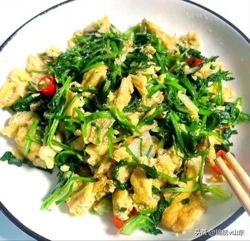 所需食材:新鲜荠菜300克、鸡蛋4个、食用油适量、盐适量、料酒少许。
