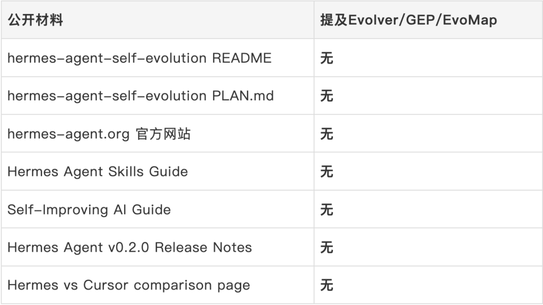 Hermes团队倒是引用了GEPA/DSPy(Stanford/Berkeley)和Darwinian Evolver(Imbue AI),都是正经的学术引用。但对整体自进化架构最相似的先行项目EvoMap Evolver(1870+ Star,114+版本发布,2026年2月1日公开),连一个「similar to」都没有。