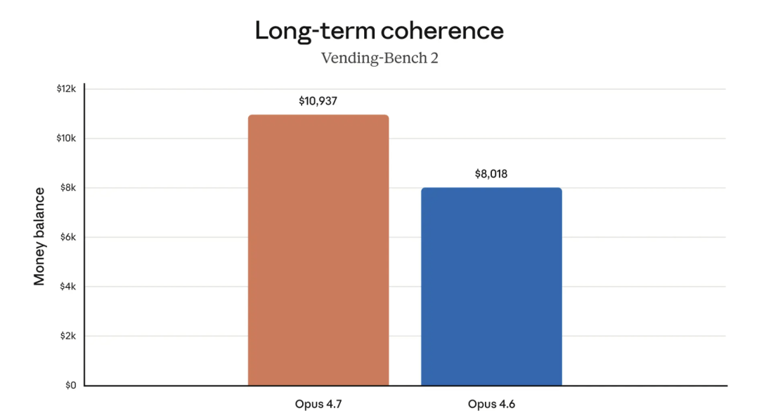 在 SWE-bench Pro 基准测试中,得分从 Opus4.6 的 53.4% 跃升至 64.3%,大幅领先 GPT-5.4(57.7%)和 Gemini3.1Pro(54.2%);SWE-bench Verified 得分达 87.6%,CursorBench 从 58% 升至 70%