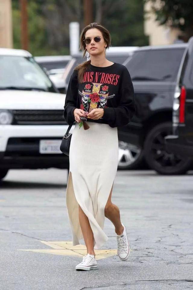 特点:牛仔裙自带青春年代感,搭配卫衣轻松穿出慵懒随性风。