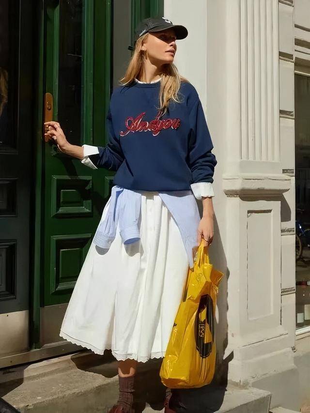 技巧:选择高腰直筒或A字牛仔裙,搭配短款卫衣拉长比例;水洗白面料更显复古感。