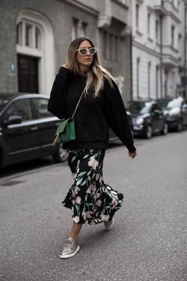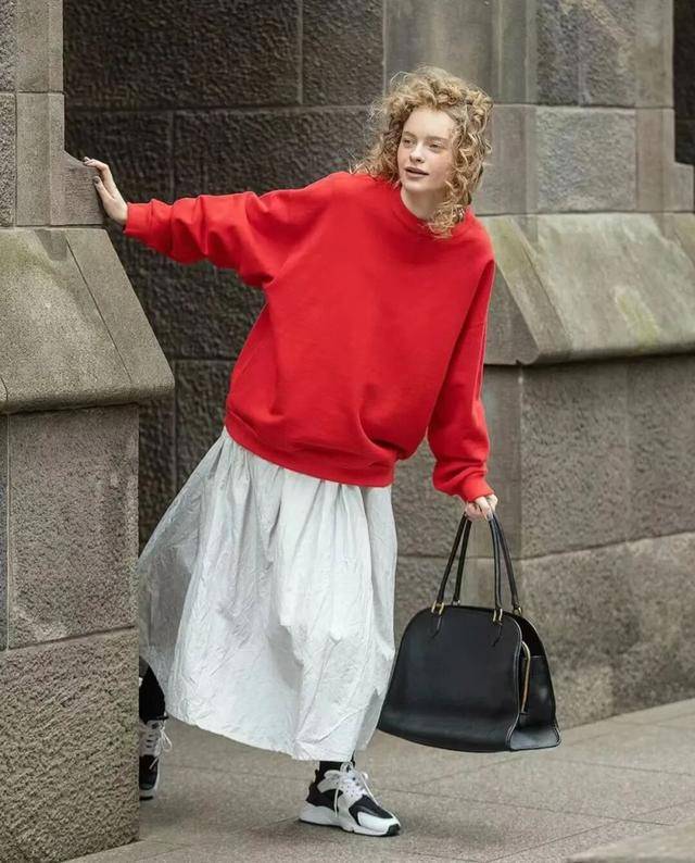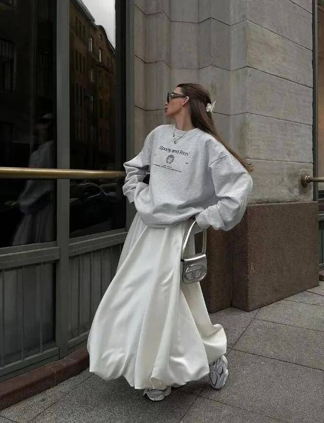 版型搭配:微胖女生选择宽松卫衣+修身包臀裙,优雅知性;小个子女生优先短款卫衣+短裙,显高显腿长。