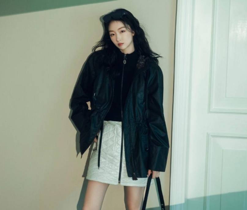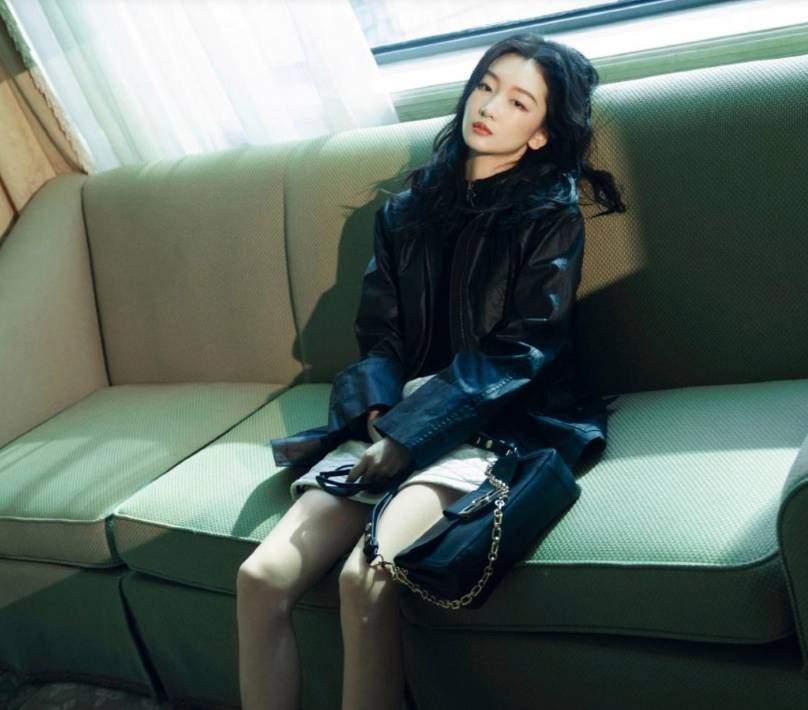 周冬雨变得越来越潮流了,银色短裙搭配黑色夹克秒变靓姐!