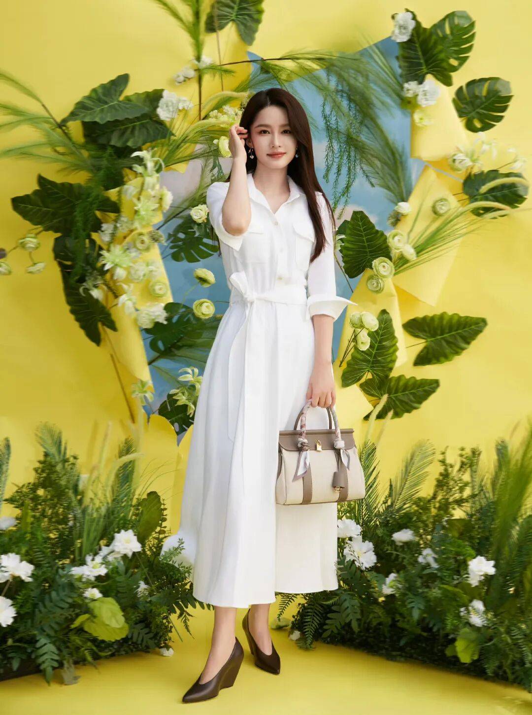 邝玲玲:偏好简约大气的风格,常选择米色、白色等基础色系的连衣裙、衬衫,搭配金属配饰提升质感。